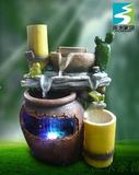 [以水為財,流水不斷,財源不絕。]一款漂亮的動態流水樹脂噴泉工藝擺件即是件精美的工藝裝飾品,又是一件吉祥瑞氣的鎮宅利市之物,放置家居客廳,辦公室,店鋪,都很好,絕對吸引眼球,作為居家裝飾和饋贈親友,都是一件不僅實用而且物美價廉的樹脂噴泉流水工藝品. 流水噴泉最大特點就是:可以淨化空氣、加濕除塵、釋放大量的氧分子、特有的獨立功水系統、能自動變化出多樣式噴水方式、很少向外濺水滴等。別致明亮的陶瓷外觀設計,為您營造高品質的生活。樹脂室內噴相當於一個天然的室內加濕器,通過流水亭系列陶瓷,樹脂室內噴泉的水循環系統,可吸附空氣中的細小顆粒物和有害氣體,切斷所有家用電器中所產生的有害電磁波,起到了淨化室內空氣、降低室內溫度和污染、釋放氧分子和延緩衰老等作用。其七彩LED燈光照明,更是增添了室內神秘高貴的氣氛.