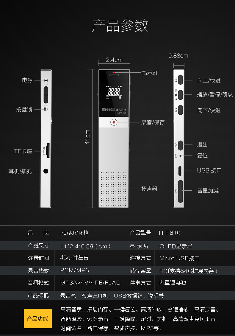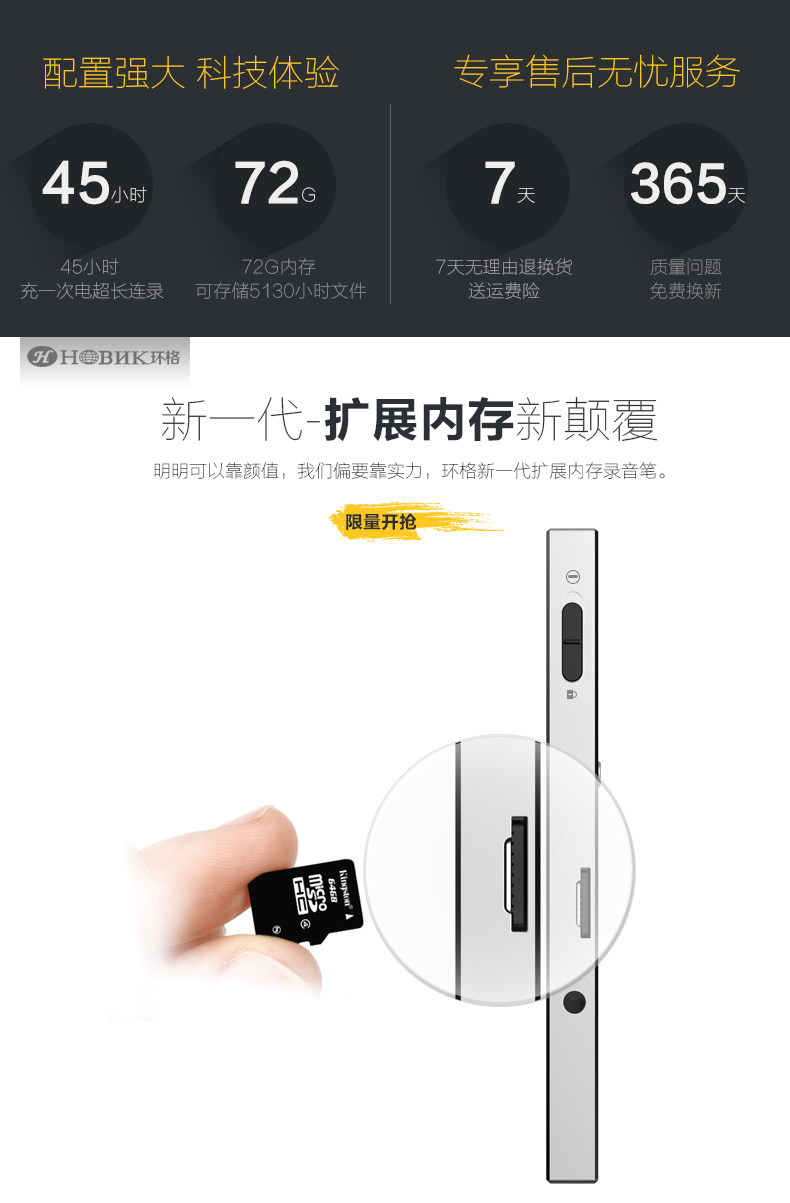 [10]【擴展內存】環格64錄音筆微型專業迷你高清遠距降噪超長聲控3