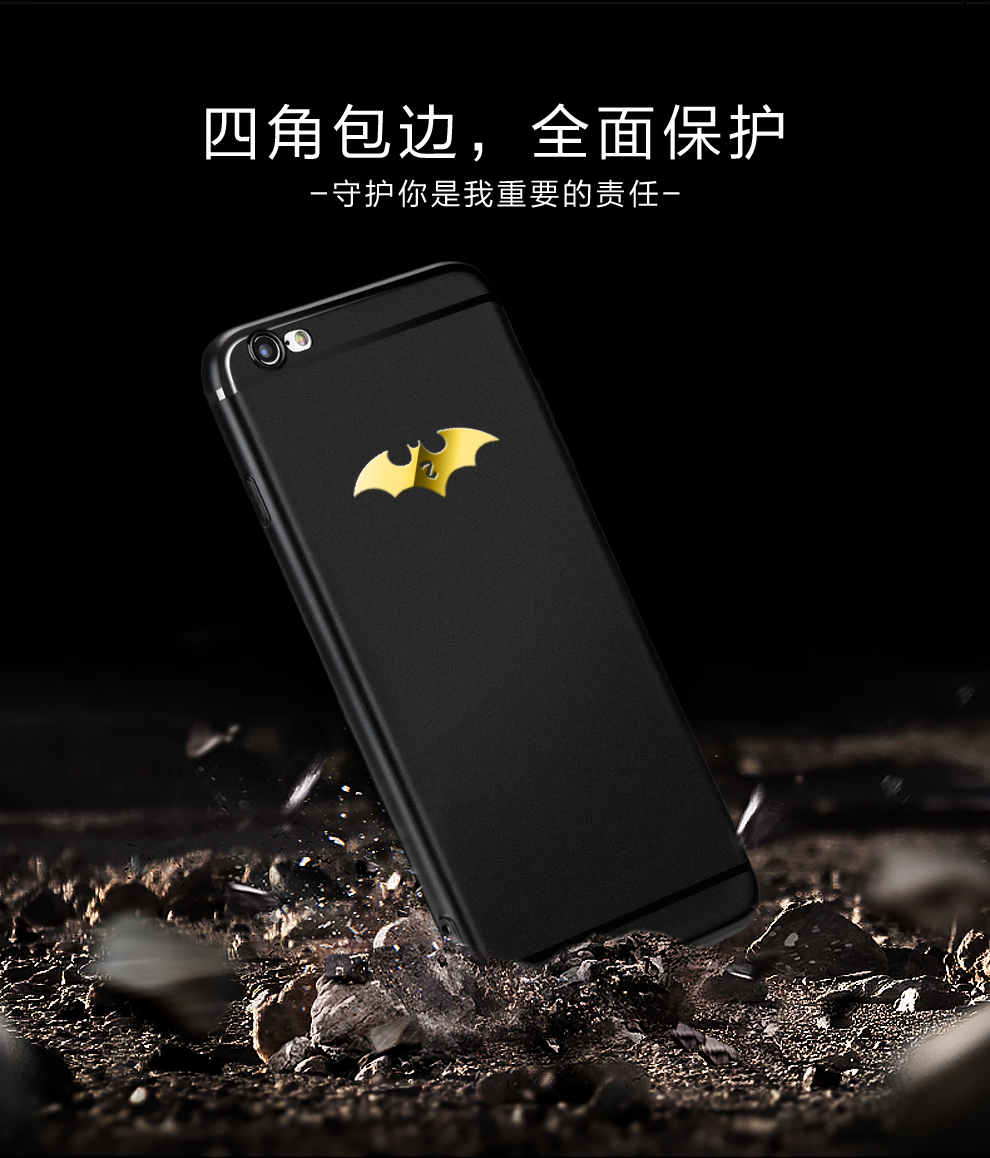 iphone6s7手機殼防摔矽膠全包軟殼 適用於蘋果77P6s6splus 黑色磨砂金蝙蝠4.7英寸《lu》
