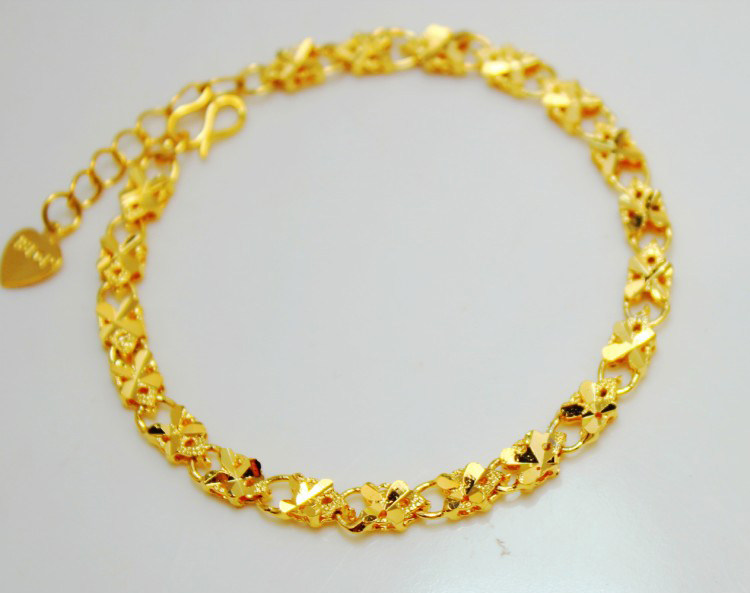 黃金手鏈 18黃金女款手鏈轉運珠手鏈多層轉運珠心形18金手鏈女