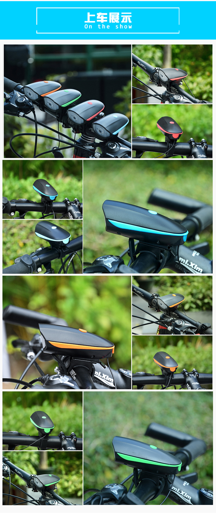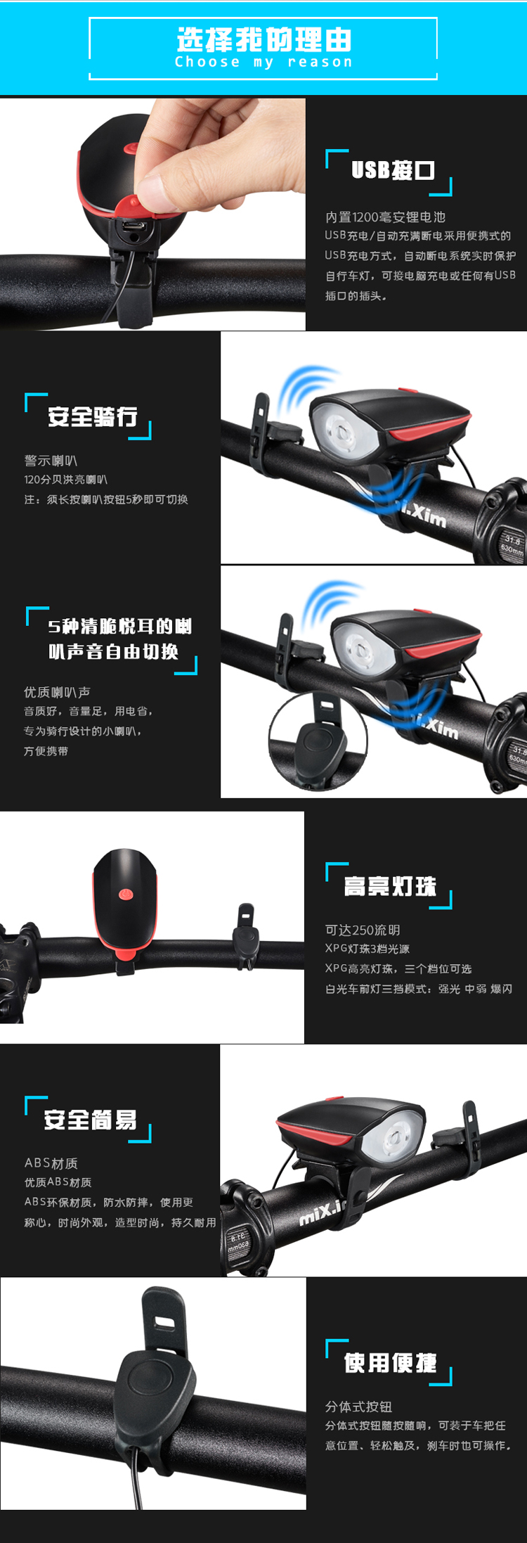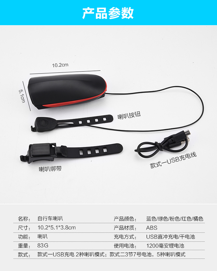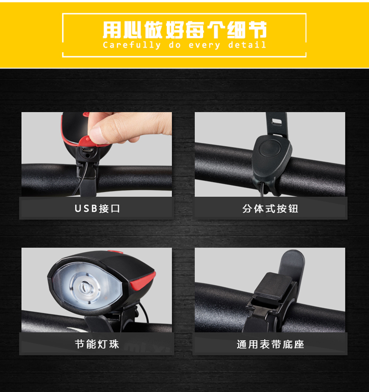 Kelly進口XPG光源自行車燈車前燈充電強光手電筒帶喇叭USB山地車配件夜騎行電鈴鐺