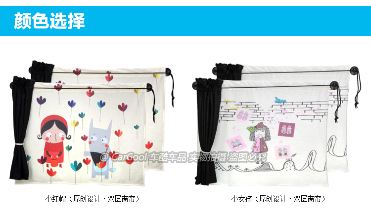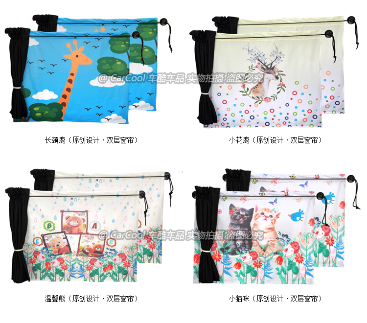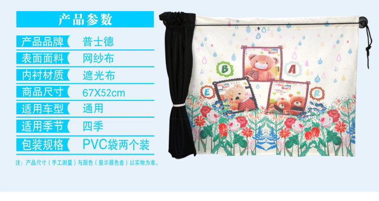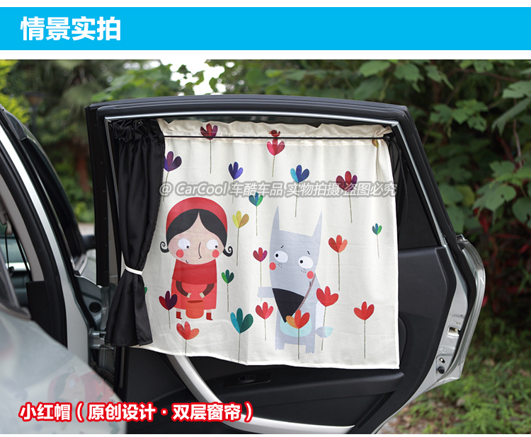 TI汽車窗簾 吸盤式 側窗遮陽簾 防曬側擋 兒童遮陽擋 卡通雙層一對裝
