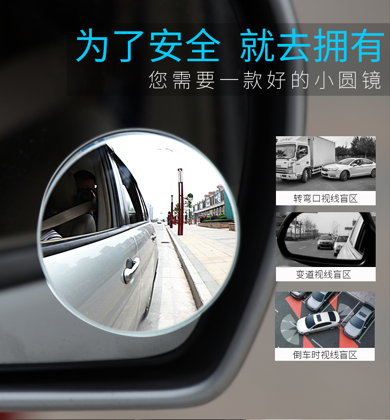 Ti玻璃高清汽車後視鏡倒車小圓鏡360度可調廣角輔助盲區反光鏡