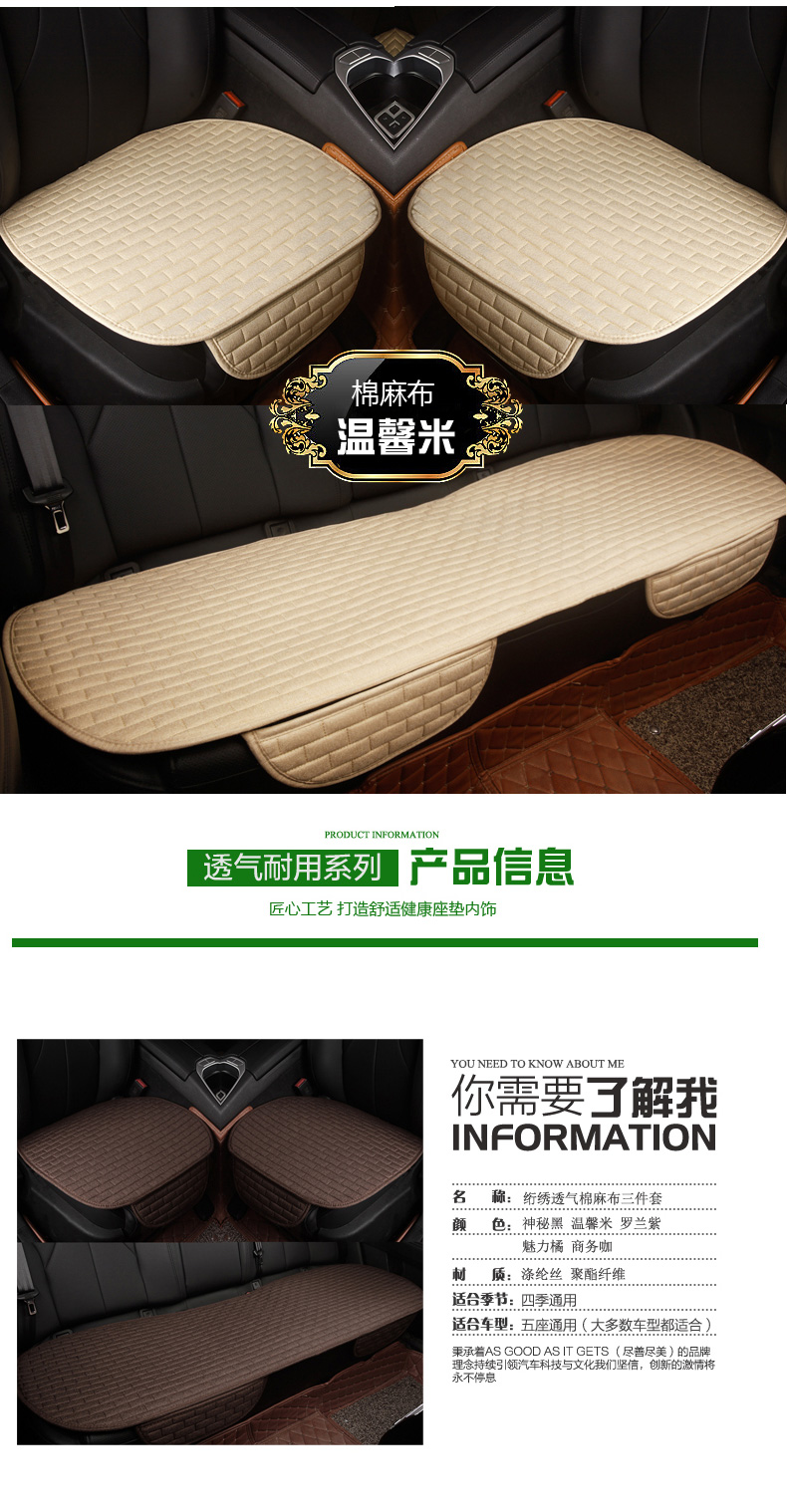 Ti汽車坐墊 四季通用 無靠背防滑坐墊座墊車墊椅墊三件套