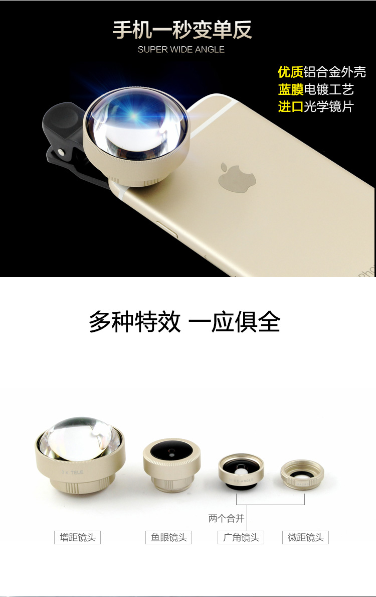 【CW】單件免運!高清自拍手機鏡頭超廣角微距魚眼增距外置單反攝像頭四合一