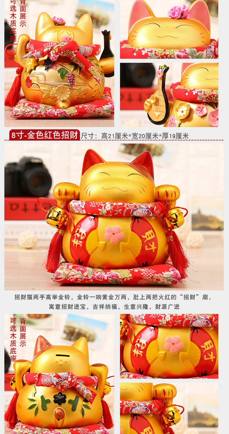 8寸招財貓擺件日本陶瓷存錢儲蓄罐客廳店鋪開業創意禮品貓舍鋪《lucy》