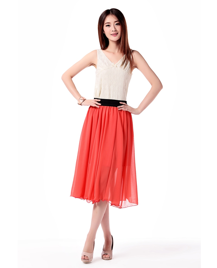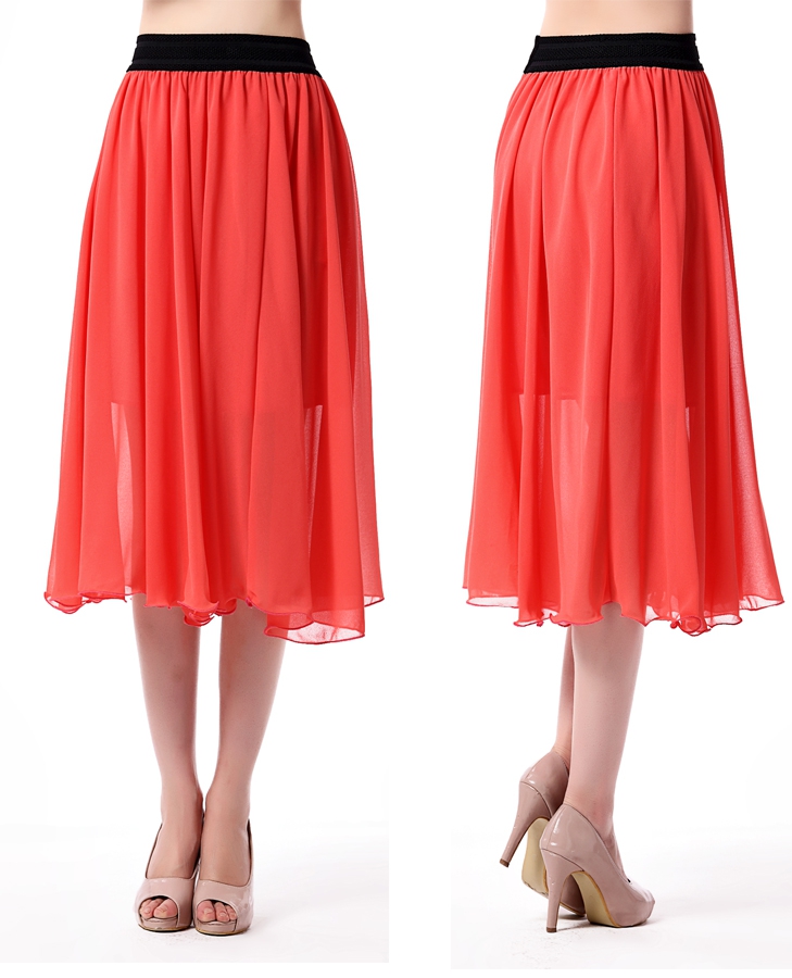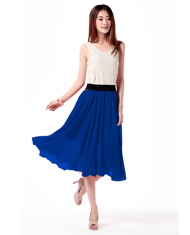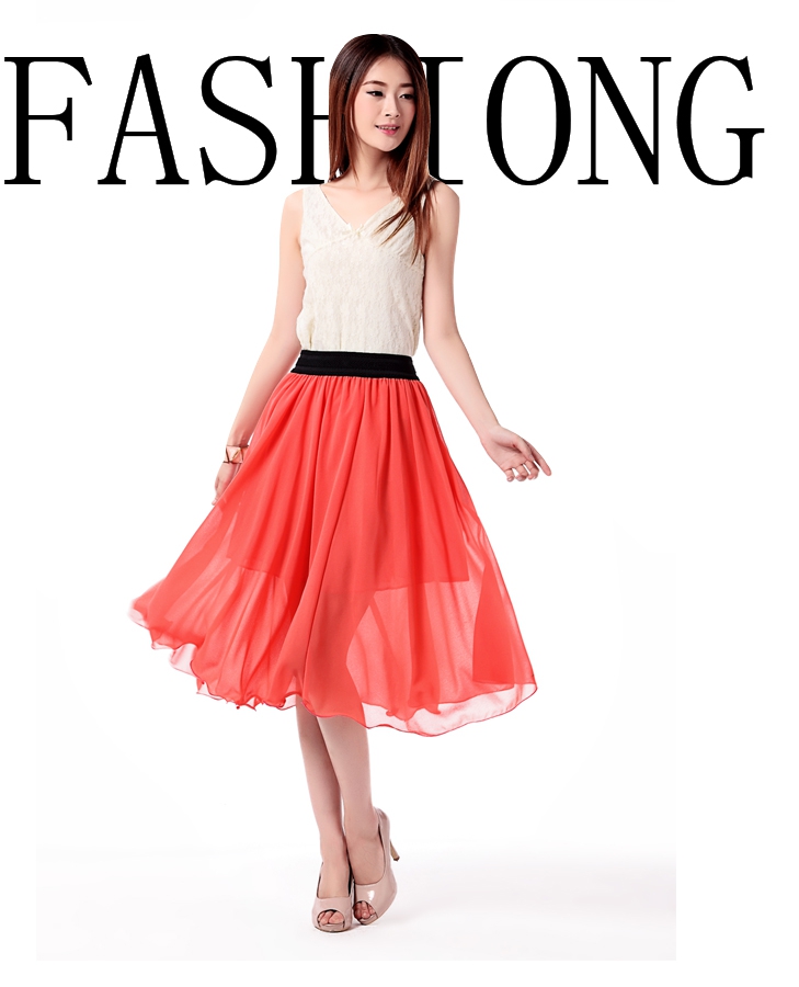 lu 2016新款女裝半身裙夏中裙顯瘦高腰雪紡長裙百褶大擺仙女裙子大碼