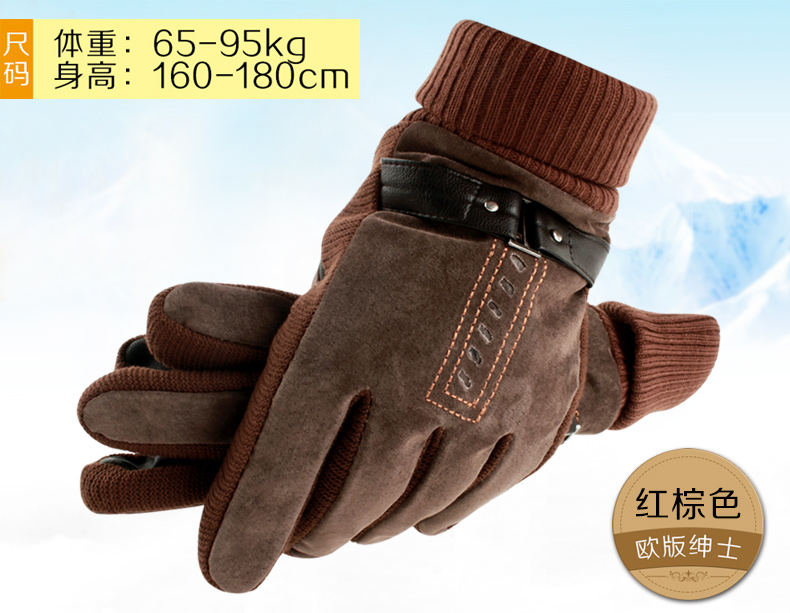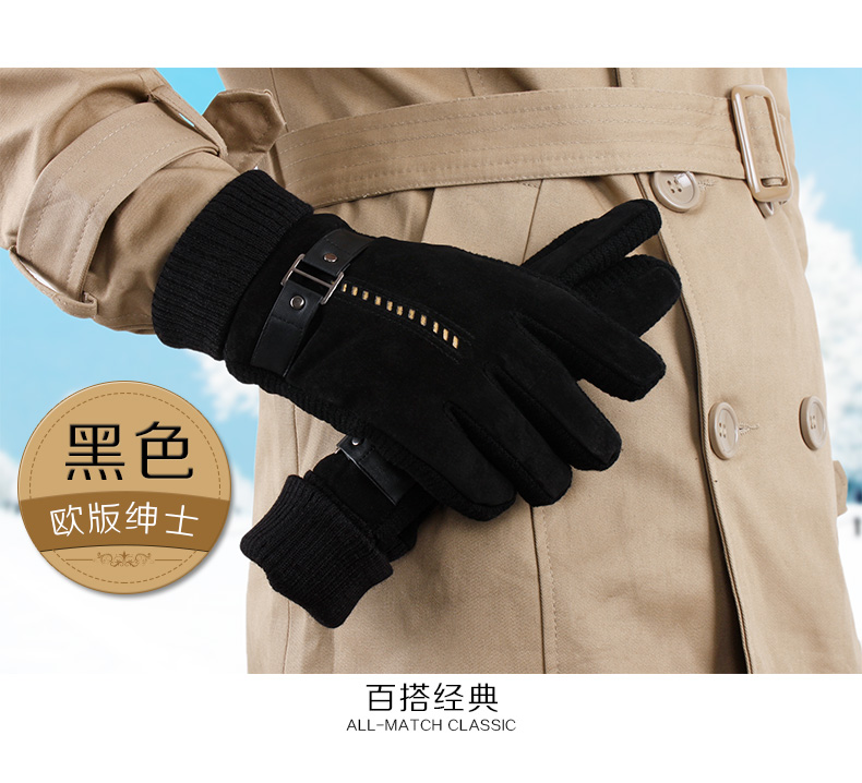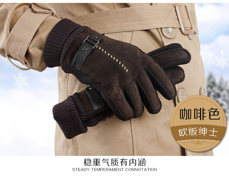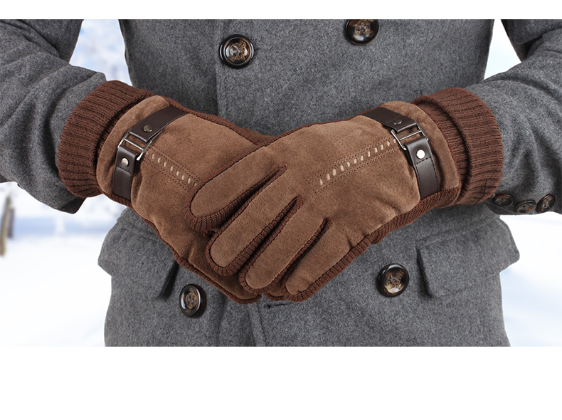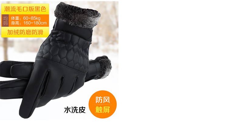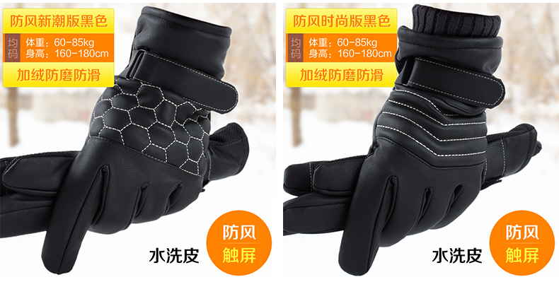 Ti加絨皮手套男冬加厚防寒保暖男士棉手套冬季手套騎車秋冬防風