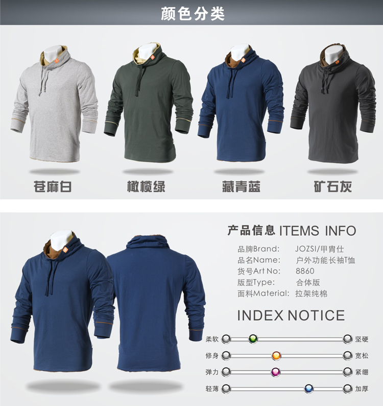 個性戶外山地自行車騎行服 男長袖t恤春秋季純棉高領運動休閑上衣《lucy》