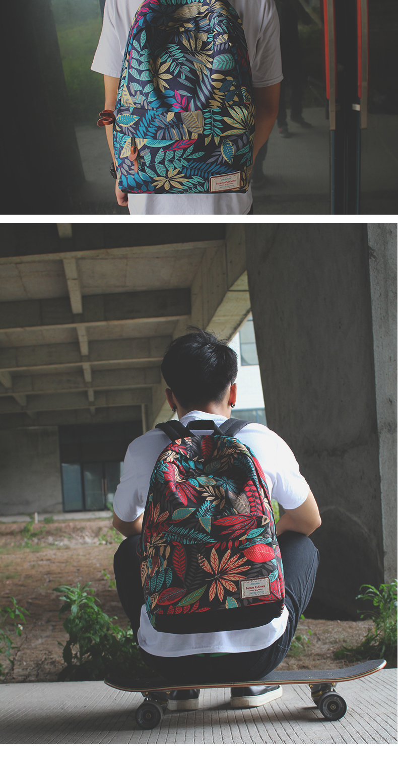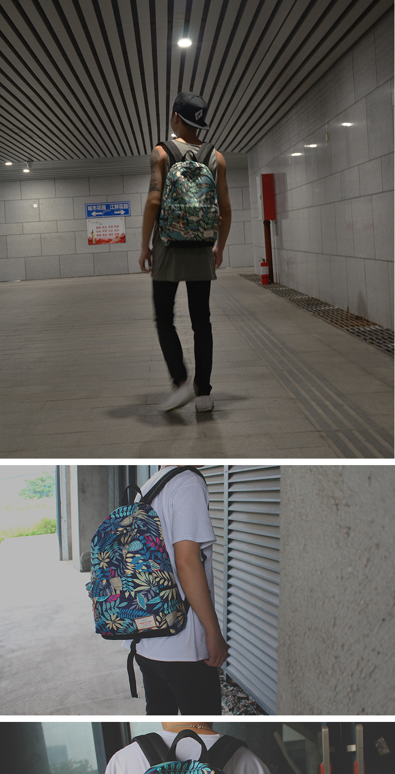 DC 印花雙肩包女韓版潮帆布書包中學生男休閒背包電腦包大容量旅行包