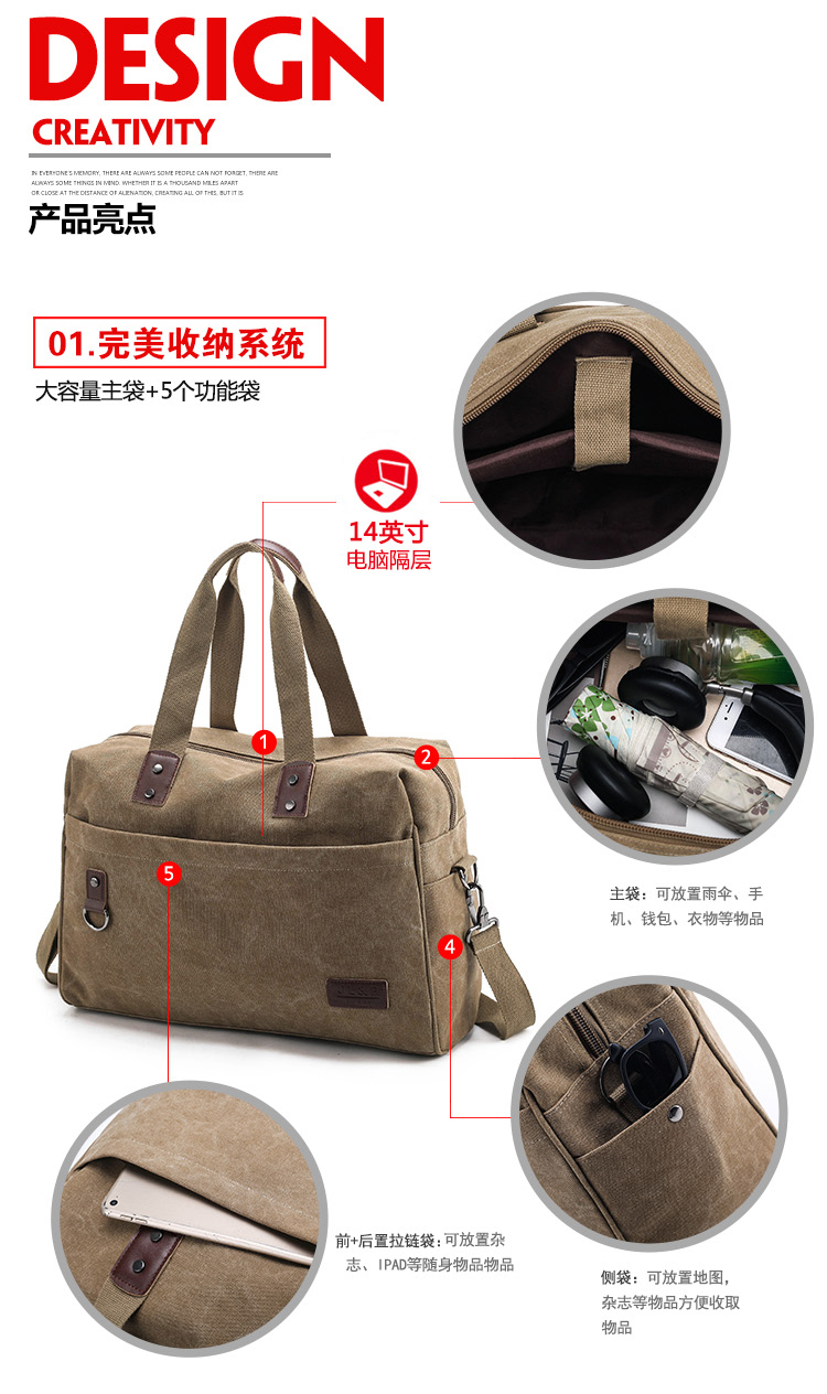 手提旅行包 大容量包 短途出差包 行李包 復古帆布包 電腦包 商務包Ti
