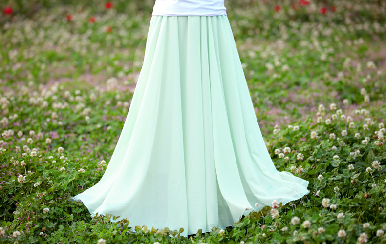 Ti 夏季百褶大擺裙雪紡半身裙子仙女裙波西米亞中長裙長裙夏女裝大碼