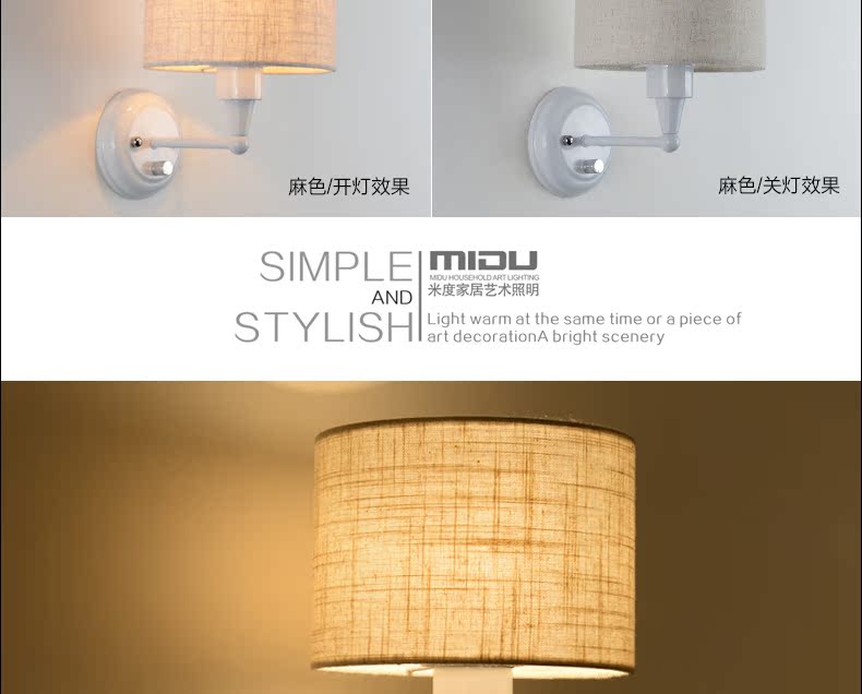 MY 日系亞麻風格圓罩璧燈 牆壁燈客廳臥室麻布創意溫馨壁燈床頭燈