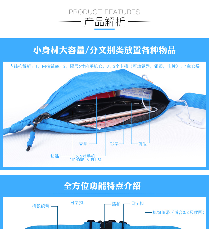 (有內袋)戶外腰包 男女跑步腰包 運動音樂手機包 貼身防盜隱形腰包 跑步小包(SA)