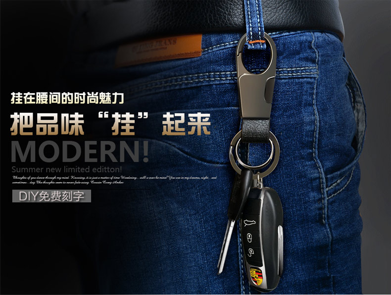 Kelly高檔品質人士 鑰匙扣男汽車鑰匙扣不銹鋼鏈圈掛件定制腰掛創意禮物