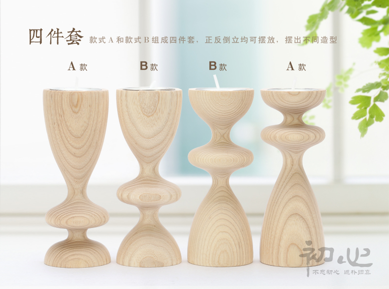 [BO] 初心 木質燭台 情人節浪漫燭光晚餐婚禮攝影道俱生日婚慶歐式擺件