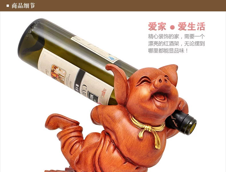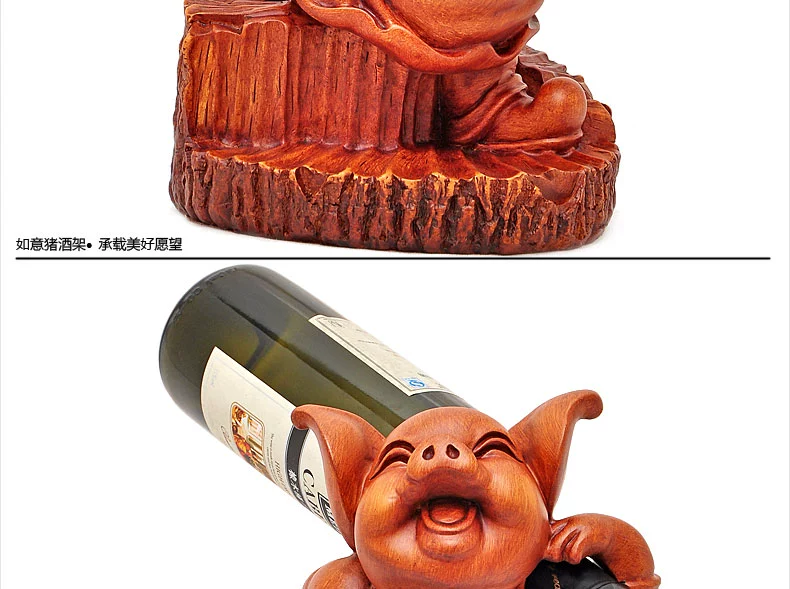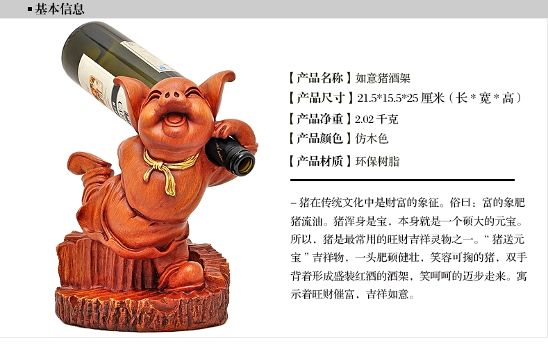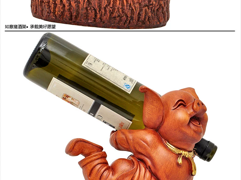 DO 如意豬紅酒酒架時尚創意葡萄酒紅酒架樹脂擺件擺設裝飾品工藝禮品 造型可愛 紅酒酒架首選 送禮自用兩相宜
