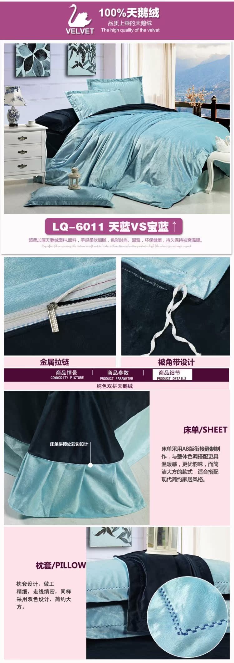 (JL) 純色加厚天鵝絨保暖四件式床單組 天空藍
