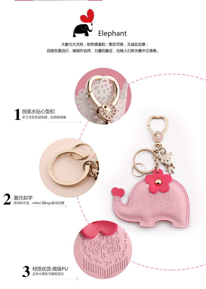 TI大象鑰匙扣 女士 汽車 鑰匙鏈 韓國鑰匙圈 創意 包包掛飾