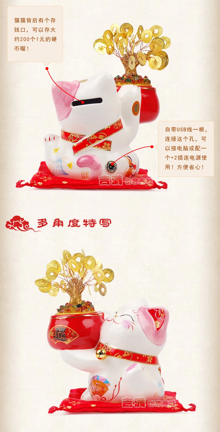 MY 日本招財貓存錢 可接USB亮燈設計 風水桌面辦公家庭擺飾
