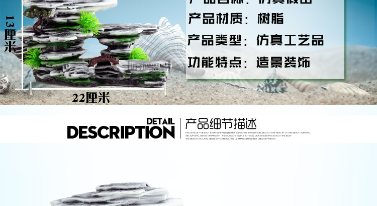 Kelly水族魚缸造景裝飾仿真假山石頭佈景中小型魚缸造景假山擺件工藝品