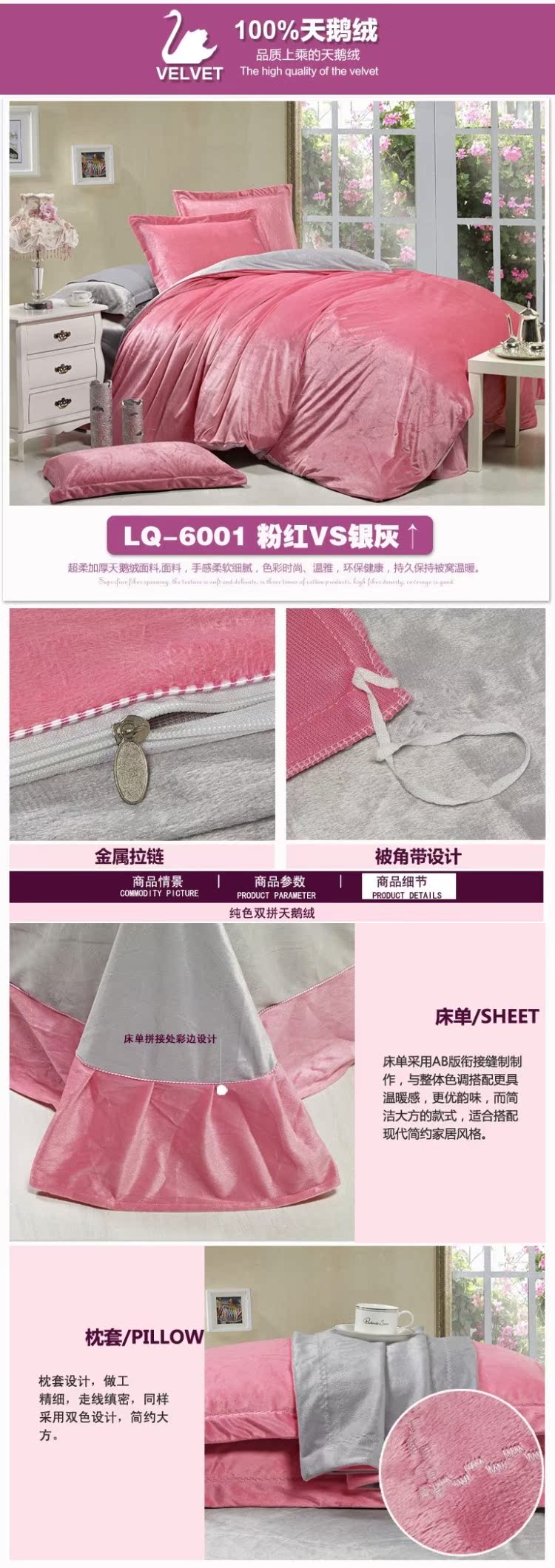 (JL) 純色加厚天鵝絨保暖四件式床單組 粉紅銀灰
