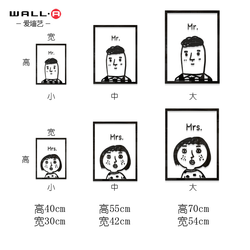 MY 給親愛的老公老婆 簡約小清新畫框牆貼兒童房臥室客廳裝飾醜萌夫婦3D亞克力立體牆貼
