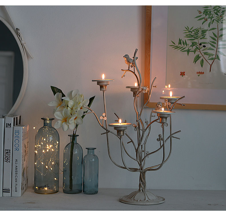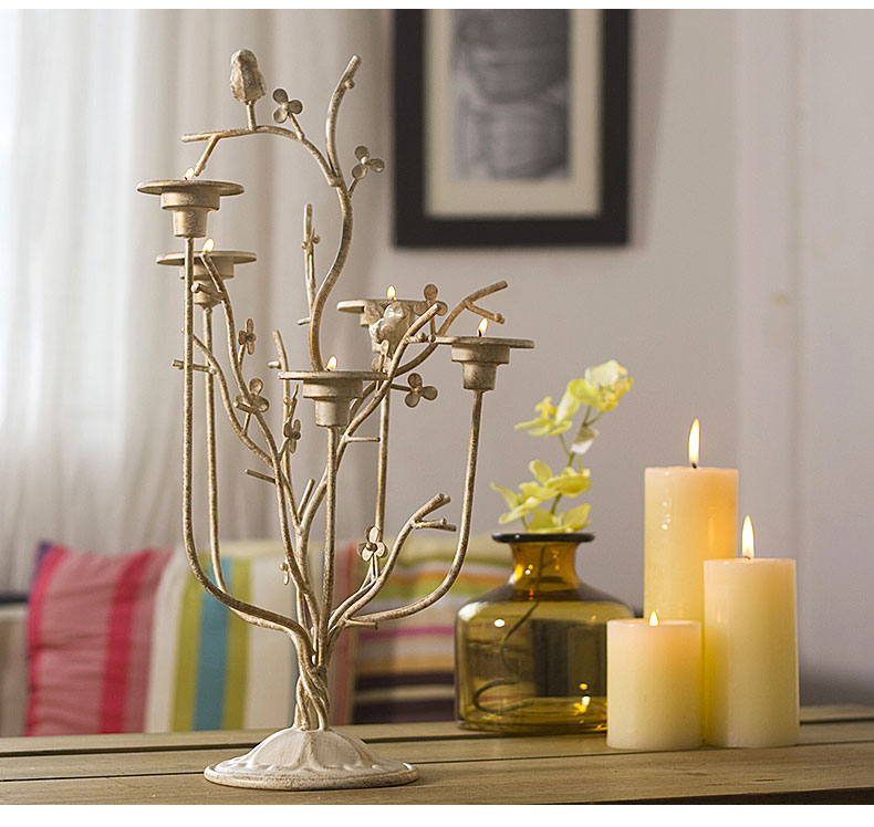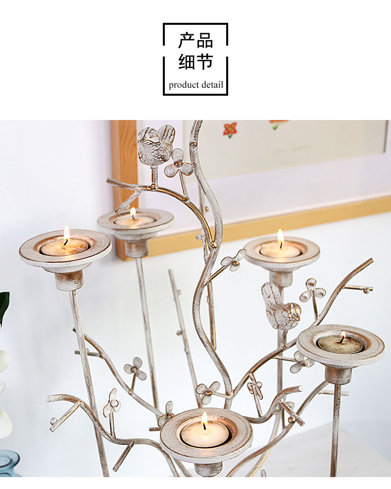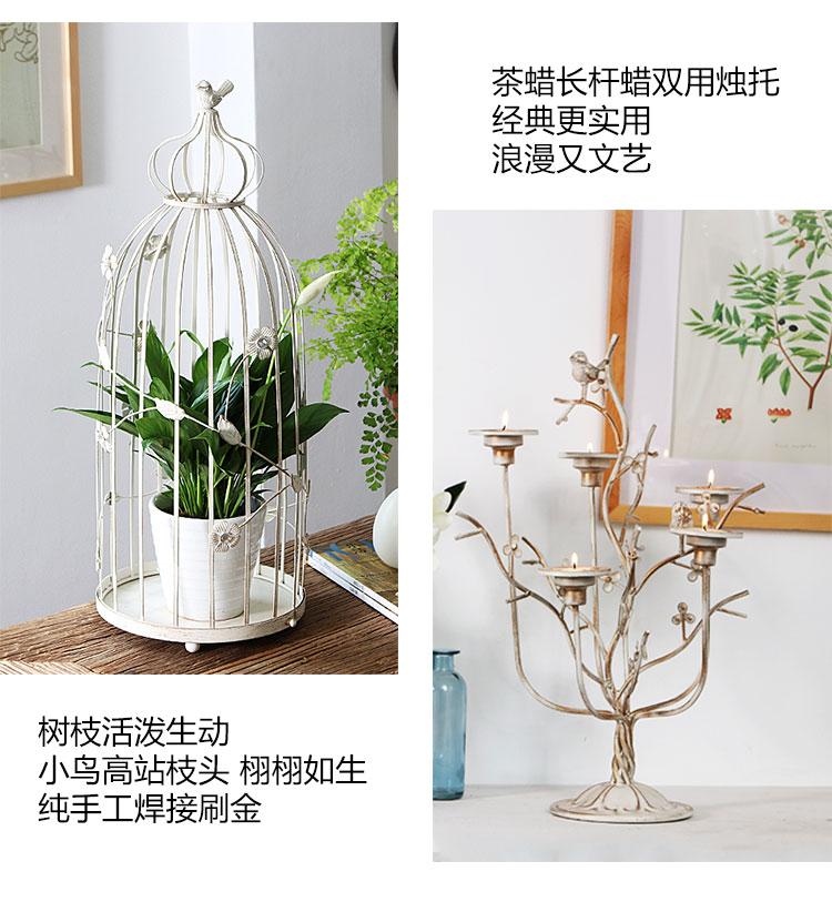 MY 藝典家居 歐式複古小鳥鐵藝刷金燭台婚慶擺件家居裝飾品燭光晚餐