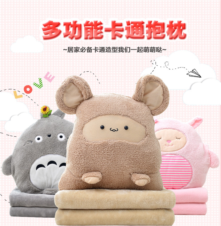萌萌熊抱枕被子兩用靠墊 辦公室沙發靠墊午睡枕頭汽車靠枕珊瑚絨毯 MY
