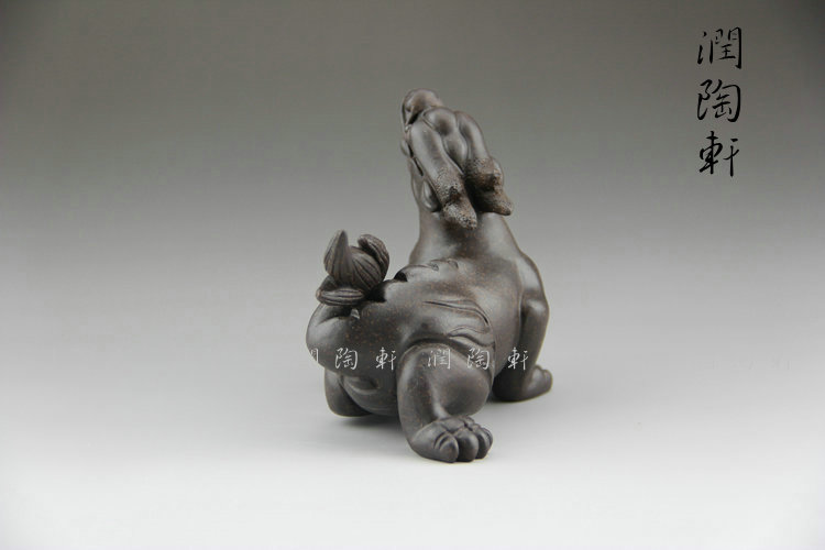 紫砂茶寵品讀: 貔貅又名天祿、闢邪,百解,共四個名字,是中國古代神話傳說中的一種神獸,龍頭、馬身、麟腳,形狀像獅子,毛色灰白,會飛。貔貅兇猛威武,它在天上負責巡視工作,阻止妖魔鬼怪、瘟疫疾病擾亂天庭。古時候人們也常用貔貅來作為軍隊的稱呼。它有嘴無肛門,能吞萬物而從不瀉,可招財聚寶,隻進不出,神通特異。現在很多人配戴貔貅的制品正因如此。 貔貅的習懶懶地喜歡睡覺,每天最好把他拿起來摸一摸,玩一玩,好像要叫醒他一樣,財運就會跟著來。 貔貅介紹: 一、有宅闢邪的作用。將已開光的貔貅安放在家中,可令家運轉好,好運加強,趕走邪氣,有宅之功效,成為家中的守護神,保合家平安。 二、有趨財旺財的作用。除助偏財之外,對正財也有幫助,所以做生意的商人也宜安放貔貅在公司或家中。 三、有化解五黃大煞的作用。用來化煞宅和旺財,尤其在財運方面,貔貅是有較明顯作用 。 作用:用於茶道裝飾,茶盤擺設,品茶時用茶水澆淋養之,質感會日漸光潤通透。提示:紫砂茶寵,初開始手感微微有些粗糙。需要主人細心呵護,養之寵之,隨著您的把玩,小寵物會越來越光澤細膩!茶寵小知識:“茶寵”顧名思義就是茶水滋養的寵物,多是用紫砂或澄泥燒制的陶質工藝品,喝茶時用茶醮茶湯塗抹或用茶水直接淋漓,年長日久,茶寵就會溫潤可人,茶95四溢。常見茶寵如金蟾、貔貅、闢邪、小動物、人物等,寓意招財進寶、吉祥如意。有些茶寵利用中空結構,澆上熱水後會產生吐泡、噴水的有趣現像。養茶寵的方法:(1)茶寵物並不是隻有普洱茶纔能養,主要是因為普洱茶的茶質養這個很容易出效果。(2)一般選擇形制適中的,不要太大,因為還要考慮讓它身體的大部分起到蓄水存水的功能。(3)養的過程中,隻需用茶水澆濯,不要用白水。這樣纔會摸上去有溫潤順滑的手感。(4)茶寵物和紫砂壺一樣,時間長了也會升值。(5)可以采用人工“發酵”和自然“發酵”兩種方式開養:人工發酵即把新養寵物丟在茶桶裡,根據自己喜好燜泡上2-4天再拿出來,自然可以達到迅速喫水。自然發酵隻能假以時日,慢慢形成效果。