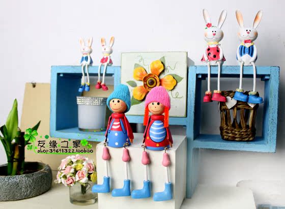 特價吊腳娃娃樹脂原木質家居裝飾品小擺件設情人節結婚小孩子娃娃