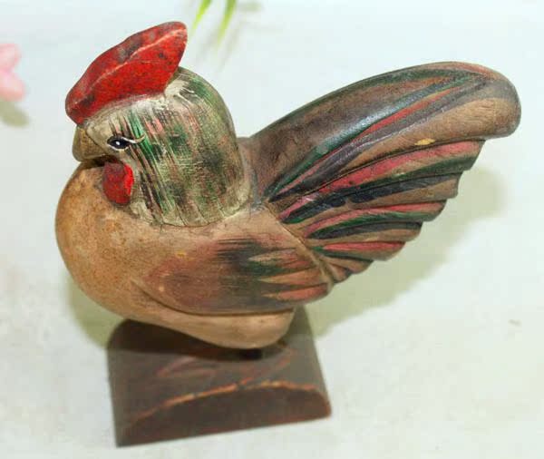 y728 單品處理 巴厘島原木雕刻彩繪大公雞 生肖雞擺件 0.2KG