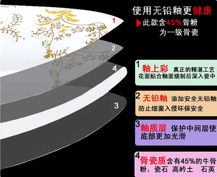 骨瓷,是世界上公認的最高檔的瓷器種類。骨瓷經過1380度高溫燒制而成,聲音清脆,質地輕巧、細密堅硬、不易磨損及破裂、在燈光的照射下晶瑩、白皙、透亮,色澤成天然骨粉獨有的自然奶白色。瓷質細膩通透、造型美觀典雅、新穎別致、雍富貴、花面清高典雅.釉色白瑕如玉、晶瑩潤澈、潤澤光亮、畫面多姿多彩.經兩次高溫燒制后,使之成為無鉛、無毒、無害,并永不退色的綠色陶瓷,適用于洗碗機\微波爐。家庭自用或者饋贈親友皆為首選佳品