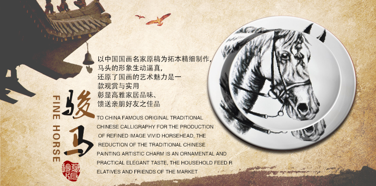 駿馬 瓷器西餐盤子餐盤/陶瓷藝術盤/看盤/裝飾盤/工藝盤/觀賞盤