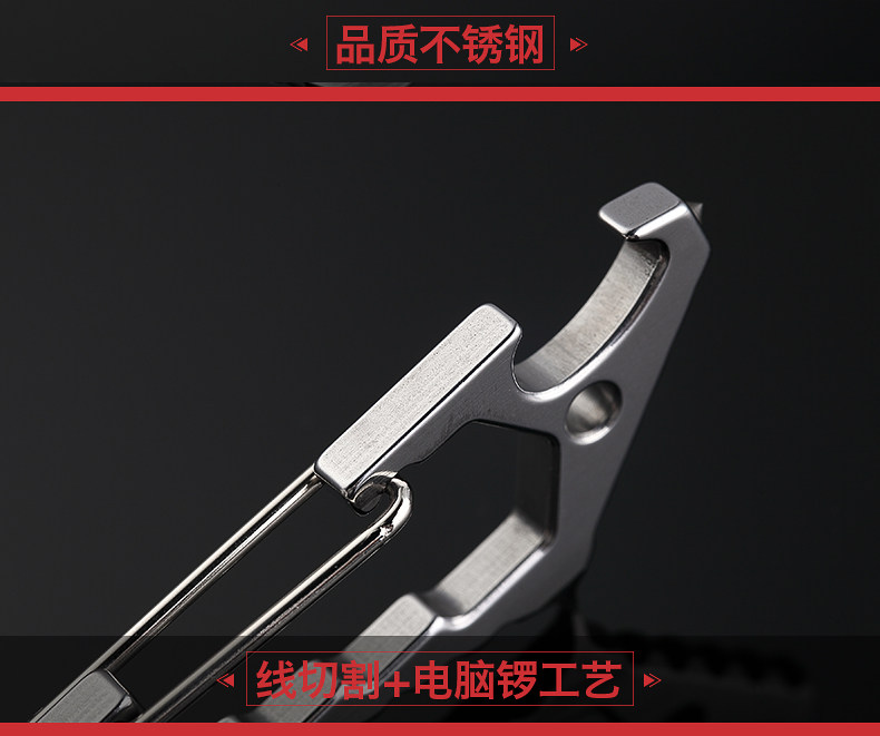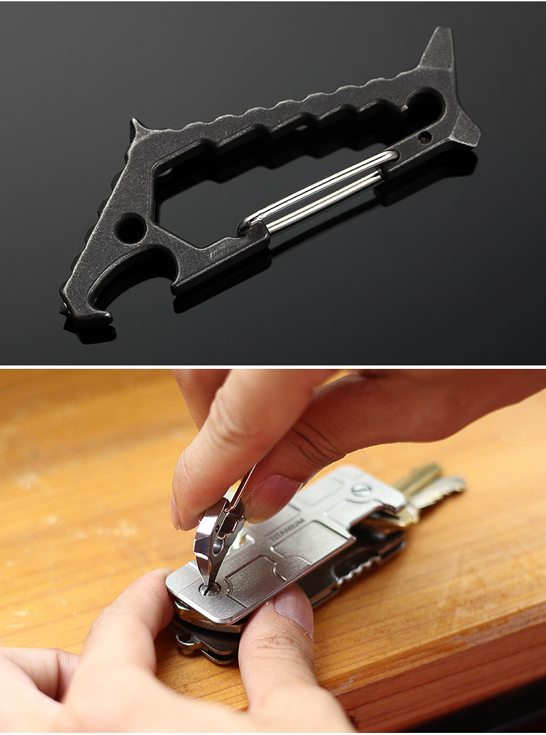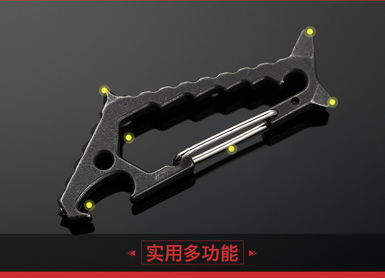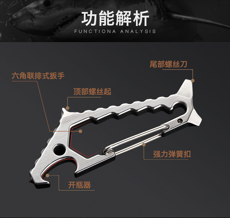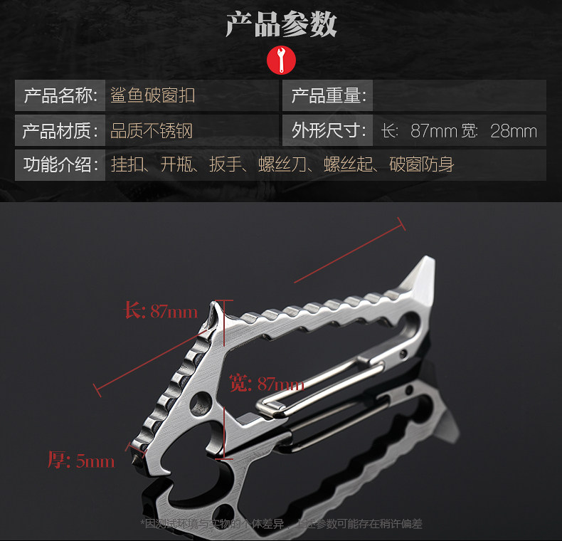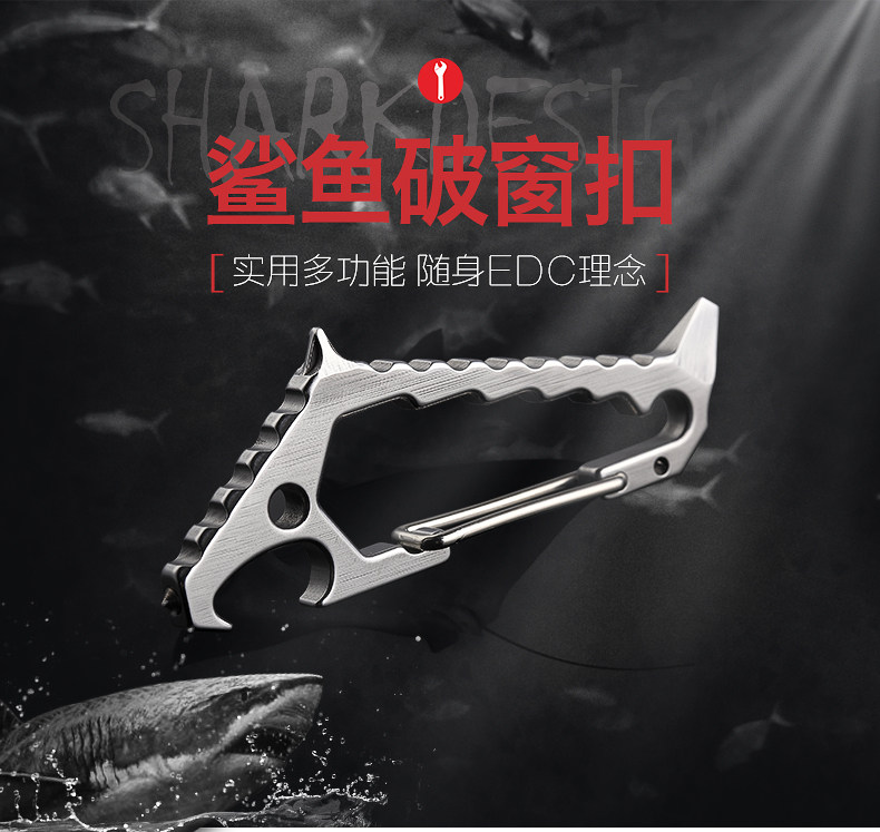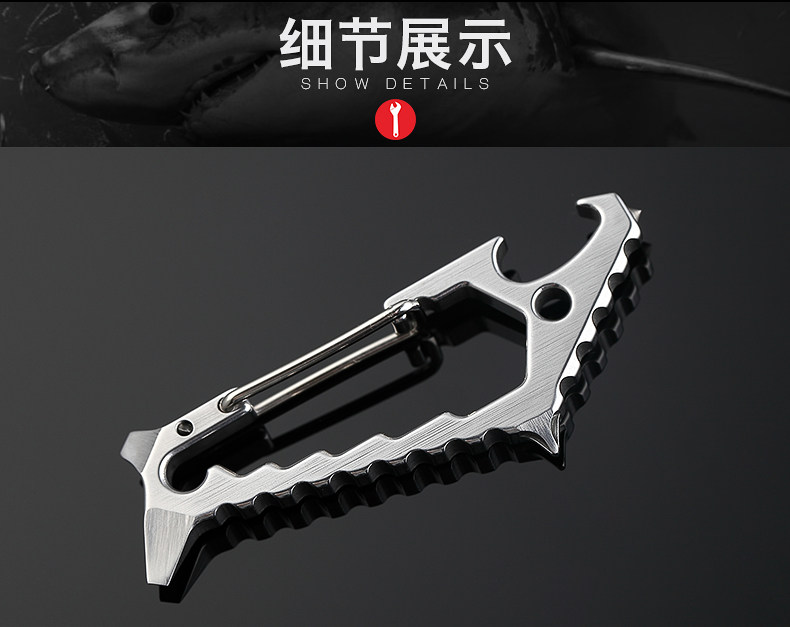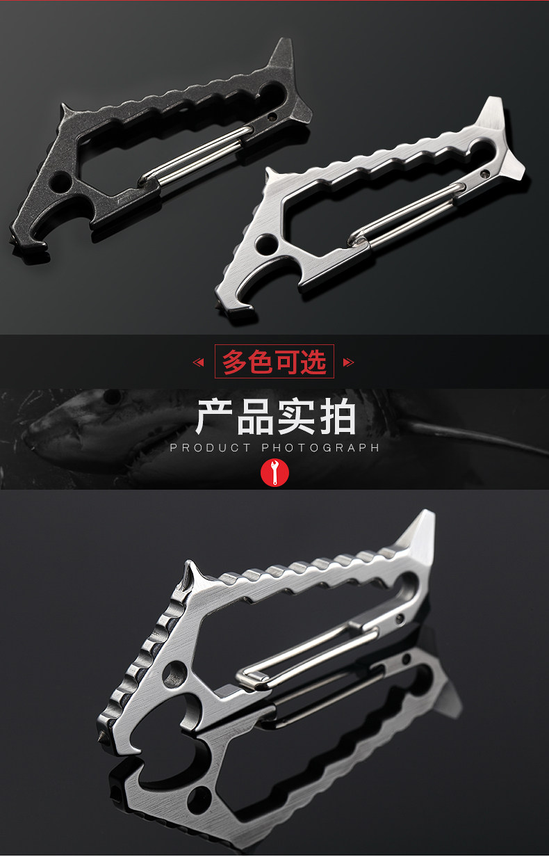 鯊魚掛扣 戶外多功能鑰匙扣登山掛扣子鎢鋼頭破窗開瓶器組合工具1入
