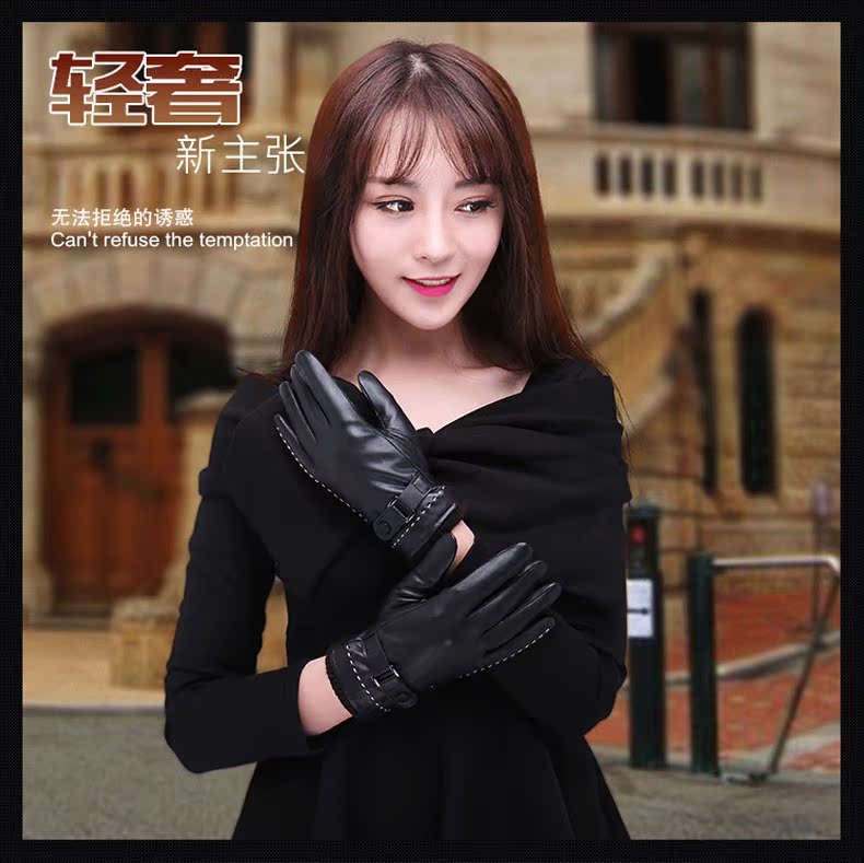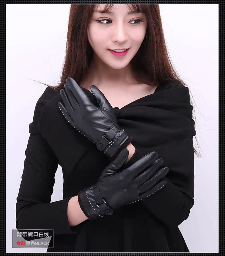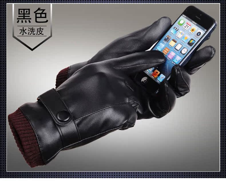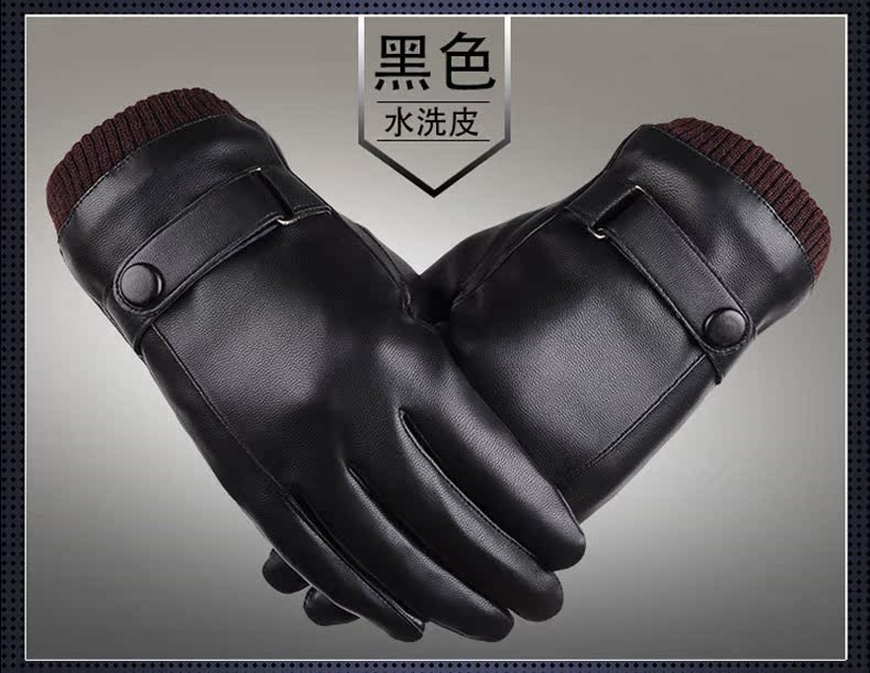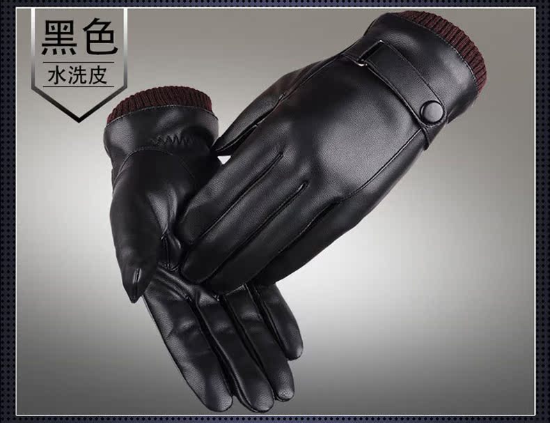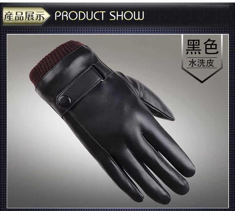 男士觸屏手套秋冬仿真皮水洗皮PU加絨保暖女士情侶開車騎車騎行1入