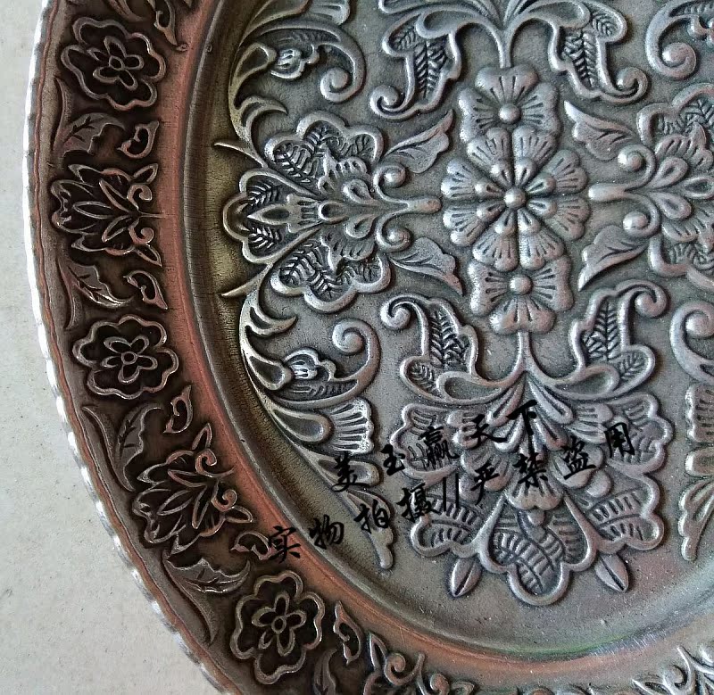 銅器純銅宣字小碗小碟盤子擺件花卉紋白銅筆洗銅煙灰缸
