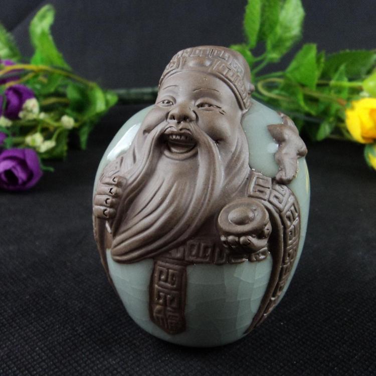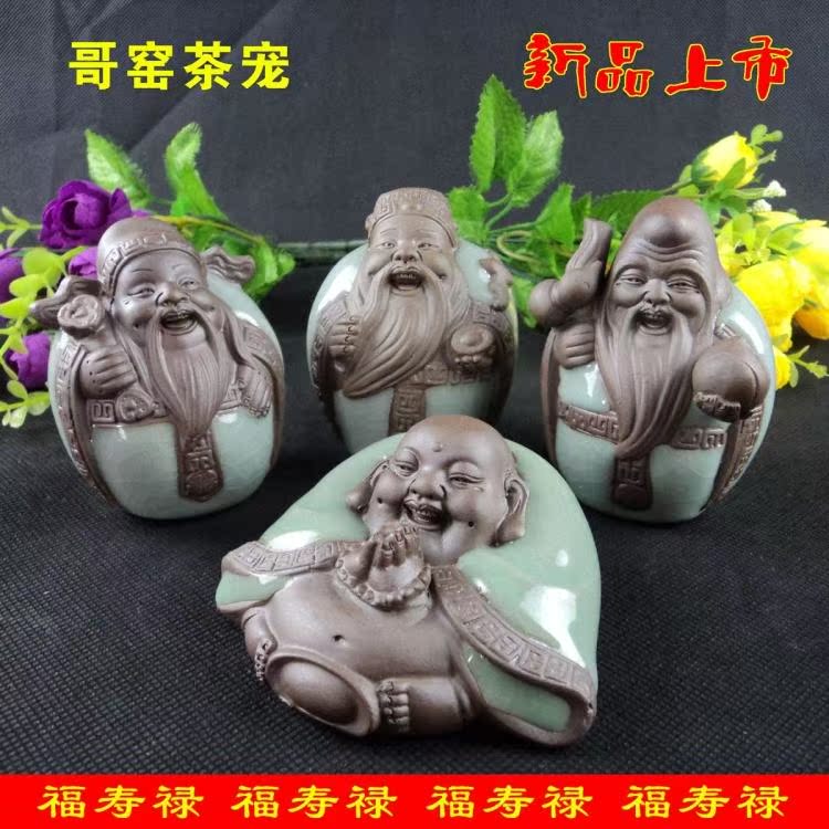 | 本公司大部分商品6一10天到貨。不接急單。急單的客戶請不要下單。感謝諒解與合作! 【產品名稱】福祿壽 哥窯茶寵擺件 【產地】德化【包裝方式】彩盒包裝 【規格】約高6.5cmX寬9.5cm