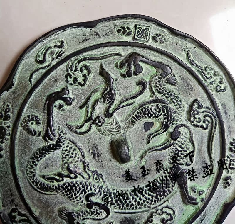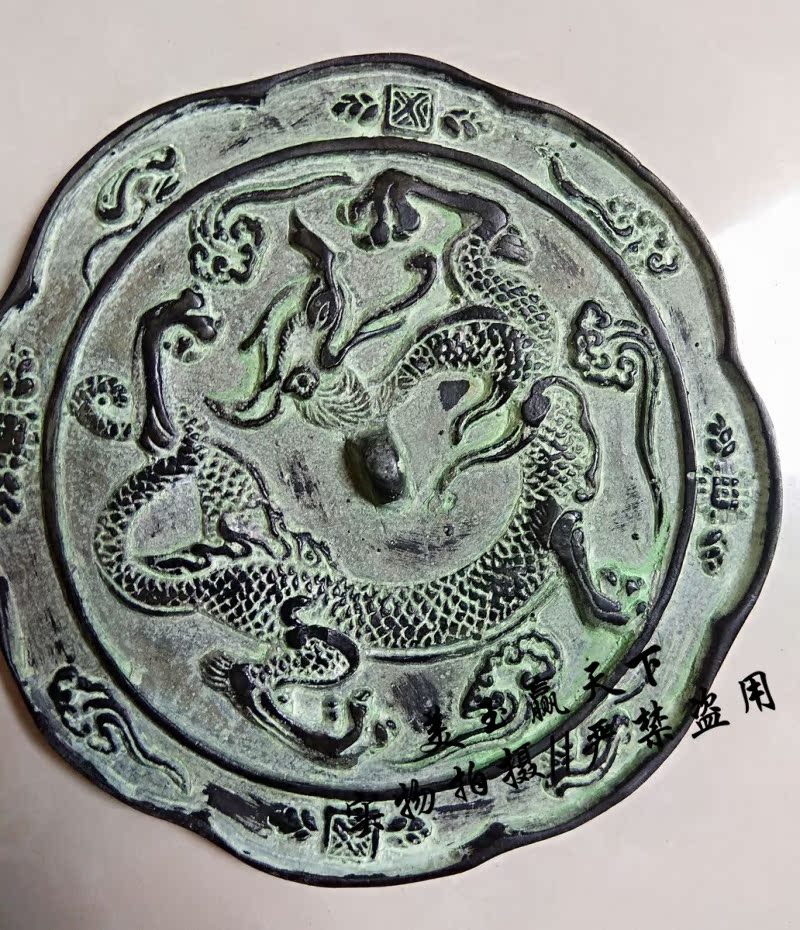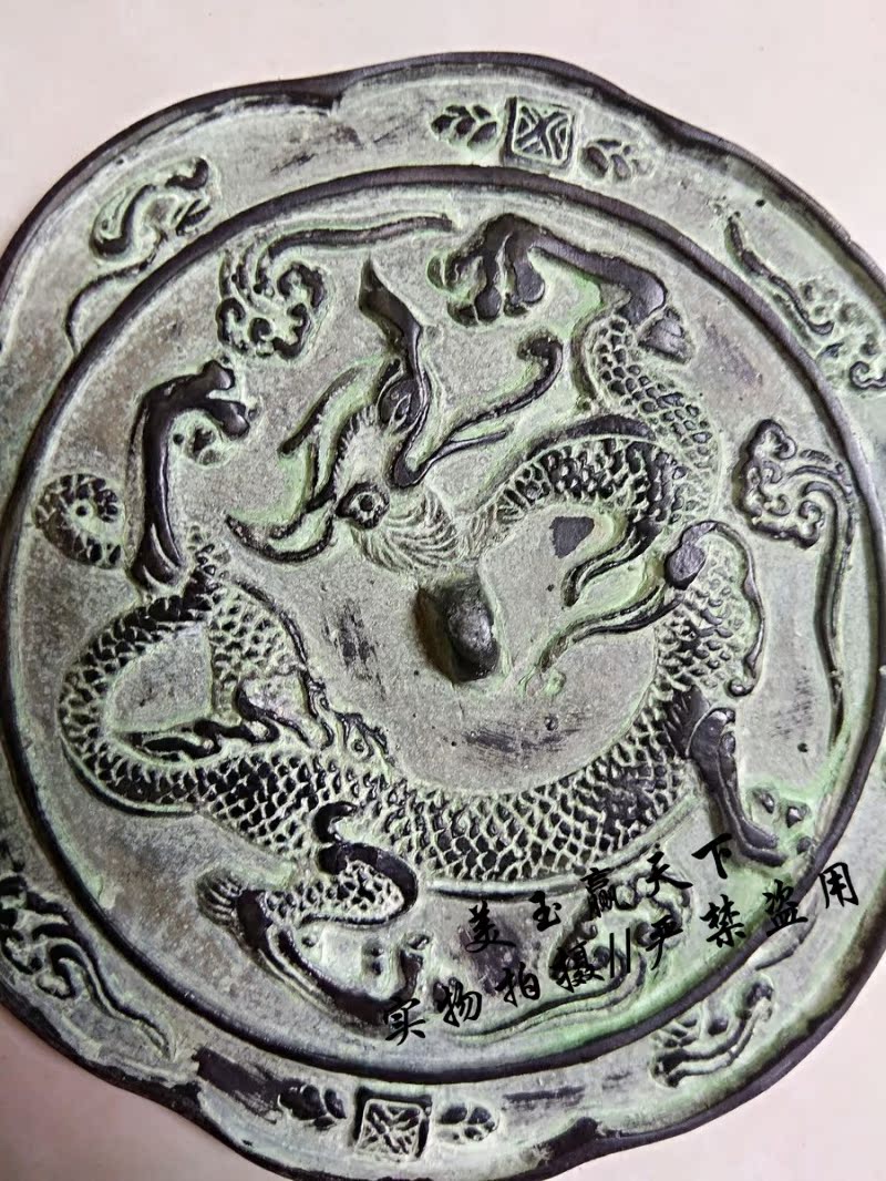 雜項仿古銅器仿出土銅器老銅器圓銅鏡仿古龍銅鏡鎏金擺件