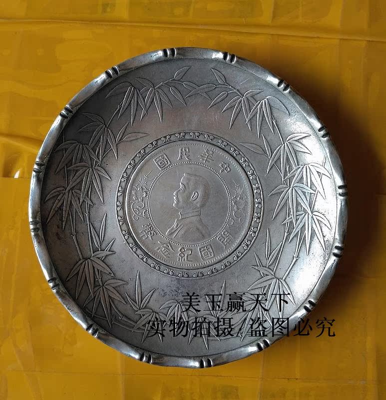 白銅碟子中華民國開國紀念幣碟子銀元盤子博古擺件雜項