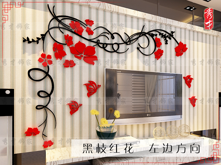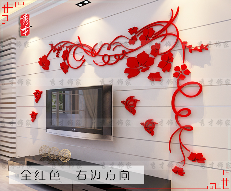 歡樂花藤花開富貴水晶亞克力3d立體墻貼婚房客廳電視背景墻沙發墻