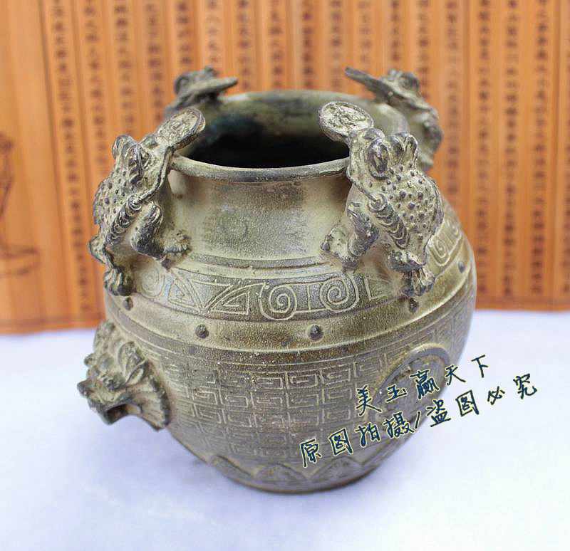 【產品重量】:約710克 【產品規格】:14*12厘米 【產品材質】:黃銅仿青銅 本店都是實物圖片 實物與照片一致尺寸為人工測量 稍有誤差 黃銅鑄造 重量(約重)每個不是很相同 請以實際重量為準 溫馨提示 【1】本店所有寶貝均為仿古做舊,不是真正的老寶貝哦! 【2】本店每款產品全部都是店主親自實物拍攝,由于光線,相機甚至顯示器,分辨率的影響,可能會存在一點色差。特別在意色差的朋友請慎重拍下!如有描述不懂的地方,請旺旺咨詢 【3】如果由于不看描述而產生的退貨,買家承擔來回運費。 【買家注意】 仿古青銅器作為新型禮品正逐漸地得到廣大消費者的厚愛。在中國五千年文明史上,青銅器占據著及其重要的位置,文化內涵豐厚,出土精品眾多,展現了中國早期冶煉技術的高超水平,其銘文更為研究中國的歷史及斷代研究提供了重要的參考依據,成為世界文化遺產的重要組成部分。 在社會高速發展的今天,隨著人們文化素質水平地提高,對高檔文化藝術品的追求是與日俱增。青銅器作為古代皇族用具、禮器及權利的象征,今天正被越來越多的人所鐘愛、收藏和饋贈,將其置于室內將為你的廳堂增色添彩,節日將其饋贈同事領導、親朋好友將使你倍受歡迎,購買收藏將提高你的修養和品味,并使你的投資有豐厚的回報。通過我們的產品讓更多的人在追求文化享受的同時,更深一步的了解中國古老文明所給我們帶來的燦爛榮耀。 一、制作工藝流程: 1.雕塑模型 2.翻制模型 3.制作蠟型模具 4.精修紋飾 5.組裝蠟型 6.模殼制作 7.溶煉澆鑄 8.清砂打磨 9.拋光 10.做舊處理 11.烘干 12.成品精修 二、青銅器產品的材質說明: 1、青銅材質:銅鉛錫的合金,古代叫“吉金”,最為昂貴,一般用來做高仿品! 2、黃銅材質:純黃銅材質,質量好,質地硬,價格相對較高,因材質限制做工略顯粗糙! 3、合金材質:大多數為銅鋅合金材質,做工細膩,外表相對黃銅材質的較為美觀,物美價廉! ?以下情況均屬于正常現象,不屬于產品質量問題,親們拍前請細看,如要求完美無法接受以下情況的親請慎拍,以免產生不必要的糾紛而影響您愉快的購物心情以及在本店的購物體驗! 1、所有青銅器均為手工制作,寶貝尺寸避免不了誤差(一般控制在2厘米)請以收到實物為準,此誤差屬于正常現象! 2、青銅器如無特別說明是實心產品的均為空心,底部均有小口,內部有沙土、白色石膏塊,細微的劃痕、砂眼處焊接、造字字跡不清楚等均屬正常現象! 3、因買家本人收藏和使用不當造成的產品問題,不屬于本店售后范圍,敬請知悉! 4、因買家個人喜好,未看清產品介紹,尺寸等諸多因素引起的退換貨,均有買家獨自承擔來回運費! 5、請親們務必當著快遞員的面驗貨,如因產品質量問題或運輸途中損壞,請直接拒簽,并在24小時內上線聯系本店售后客服,以便及時處理退換貨事宜,避免不必要的糾紛和損失,運費由本店承擔!