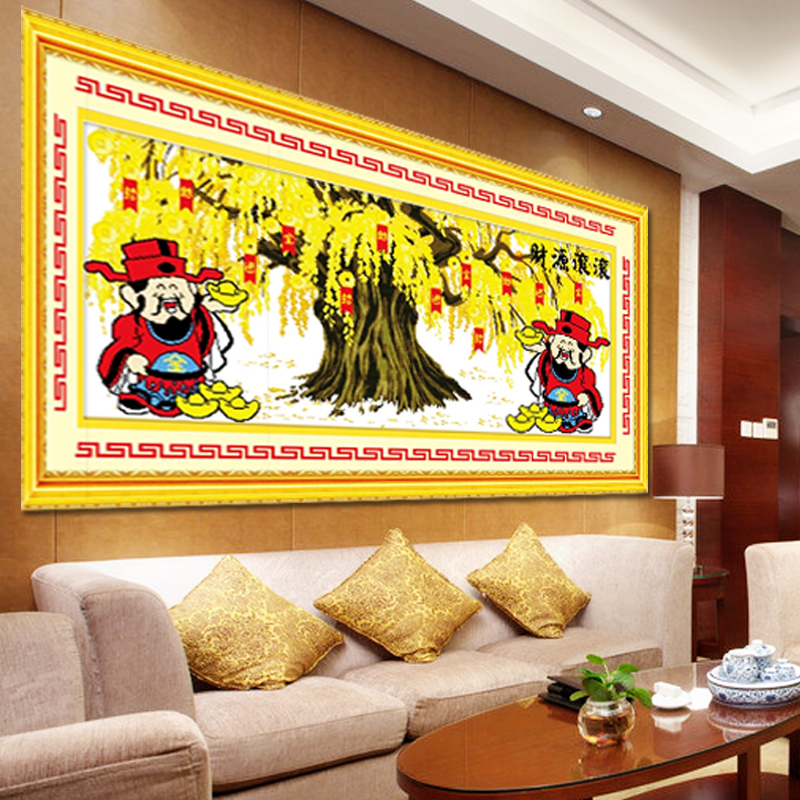 精準印花十字繡財源滾滾招財進寶財神爺搖錢樹十字繡發財客廳掛畫