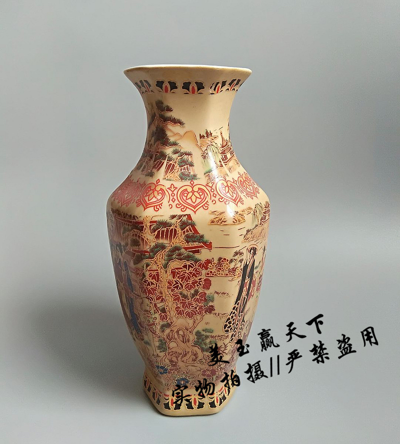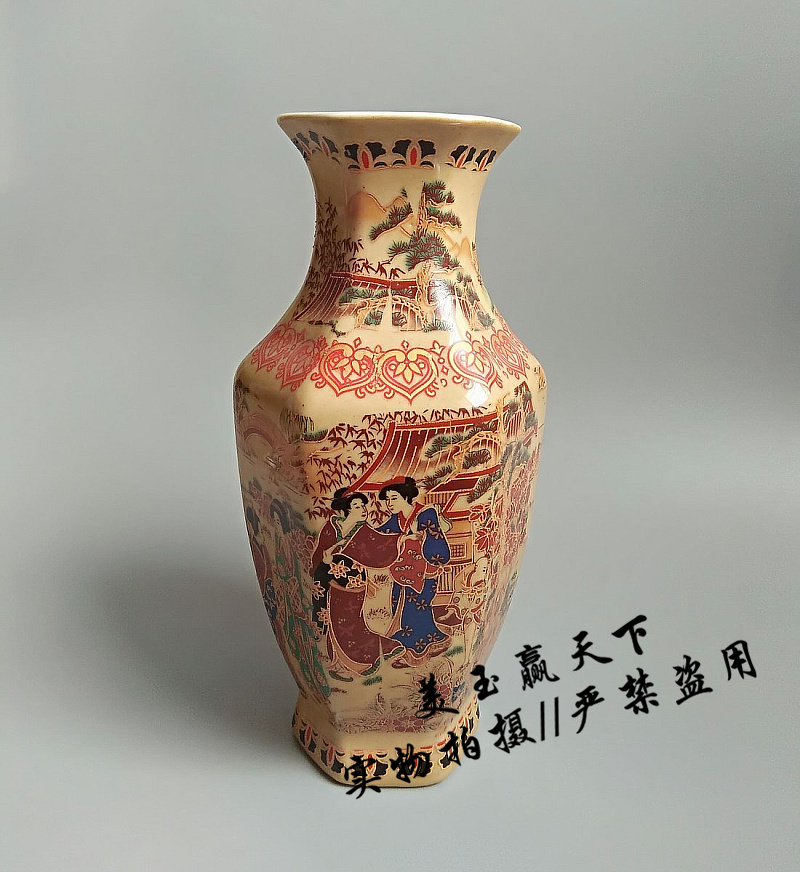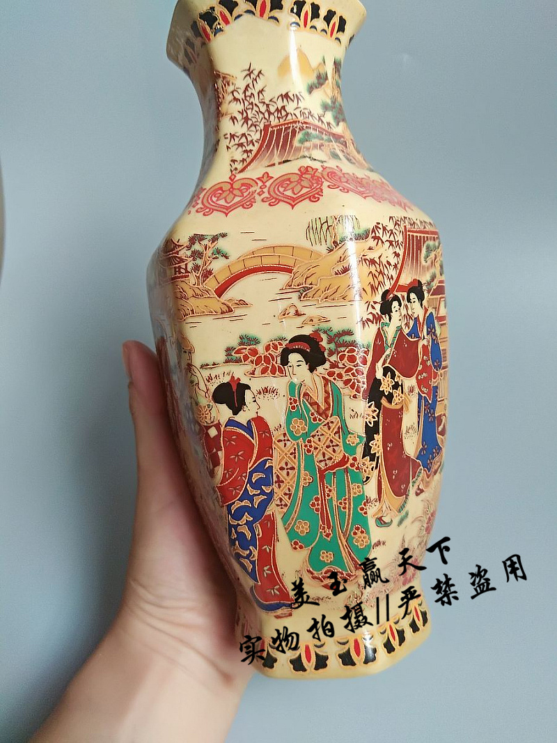 瓷器景德鎮陶瓷器琺瑯彩侍女六方瓶花瓶擺件使用饋贈
