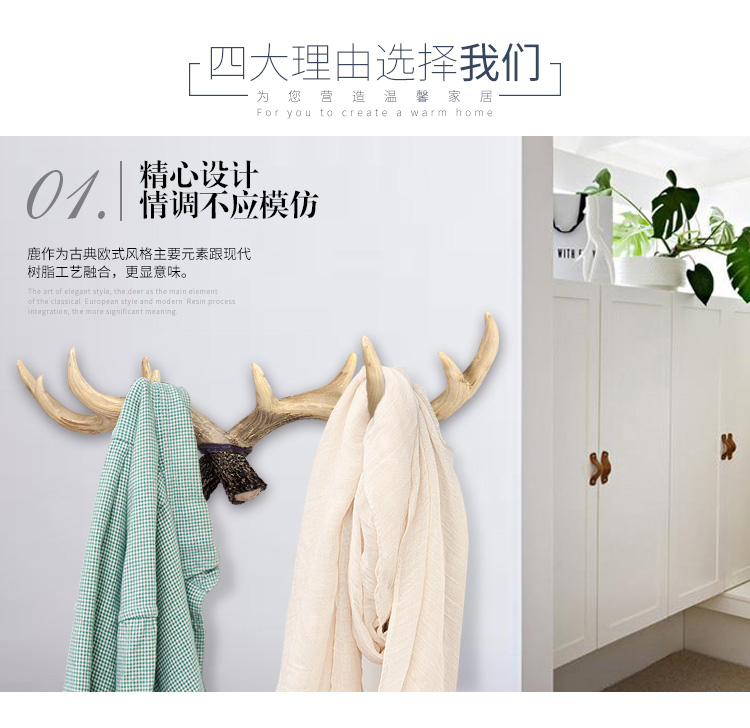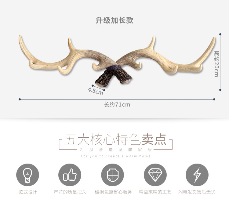 美式創意門口鹿角裝飾鑰匙掛鉤客廳玄關背景墻面工藝品衣帽架壁掛
