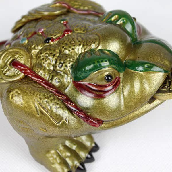 【品名】變色金蟾茶寵大號、小號可選擇 【材質】紫砂 【規格】小號10.8厘米*6.7厘米*5.5厘米;大號15厘米*11.5厘米*7厘米。 【簡介】當此擺件碰到開水時會產生變色 待水溫下降時就恢復原來的顏色。由紫砂制工成的茶玩擺件,具有不污染環境,對人體無毒,光潔度高,耐酸堿、耐腐蝕、耐高低溫、抗老化、防水防壓、不變形等等的優良特點,在茶道領域上,可以說是越來越的占據著傳統的紫砂茶玩的地位。值得愛茶人的極力推廣。 |