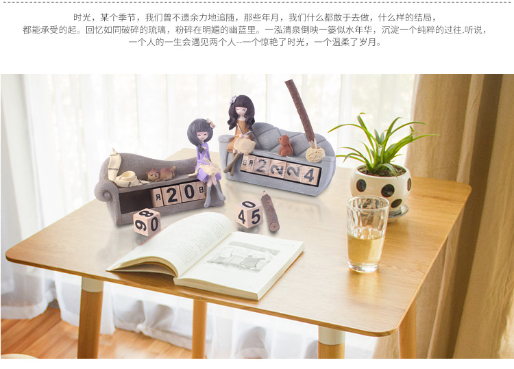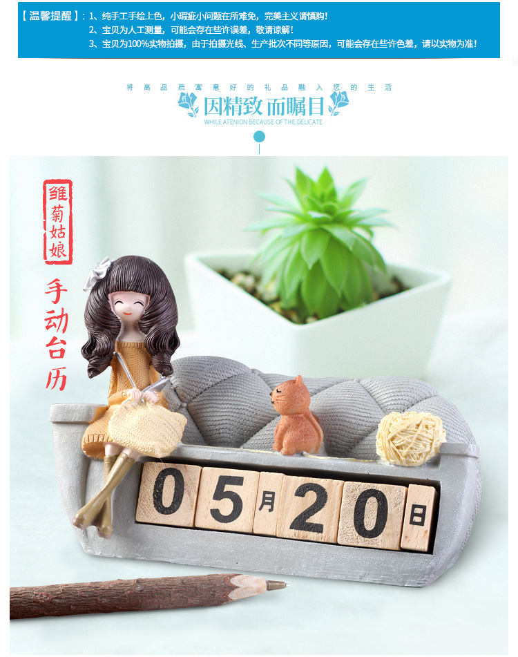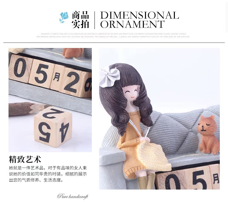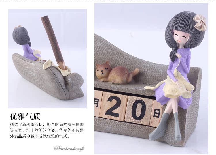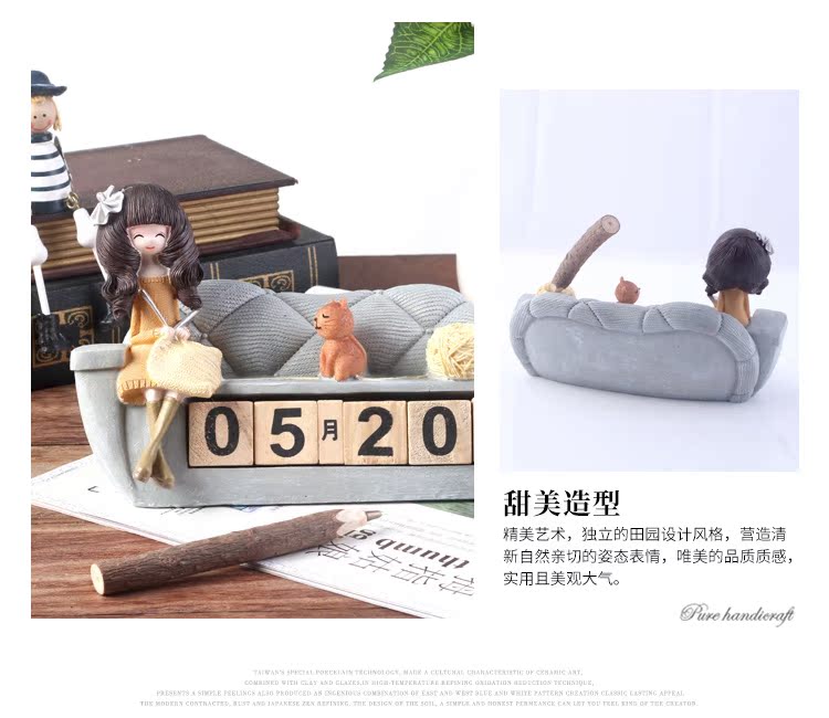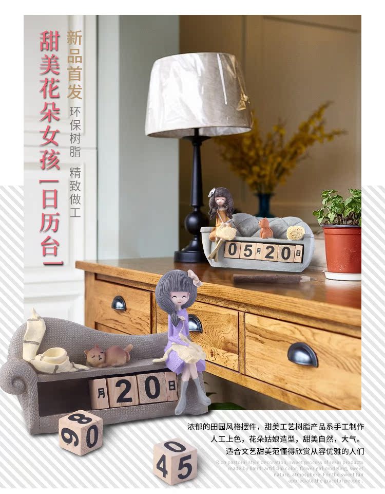 樹脂工藝品具有經久不退色特征,花朵姑娘家居沙發造型桌面可翻轉臺歷,造型典雅,極具質感,甜美大氣美觀,形象生動,表現力強,有較強真實感和觀賞收藏性,是一件居家室很好的裝飾品,純手工彩繪,做工精細,形象生動,為您的家居生活增添更多可愛浪漫甜蜜的氛圍,放在家中美觀大方,將帶給您小屋溫馨幸福感...