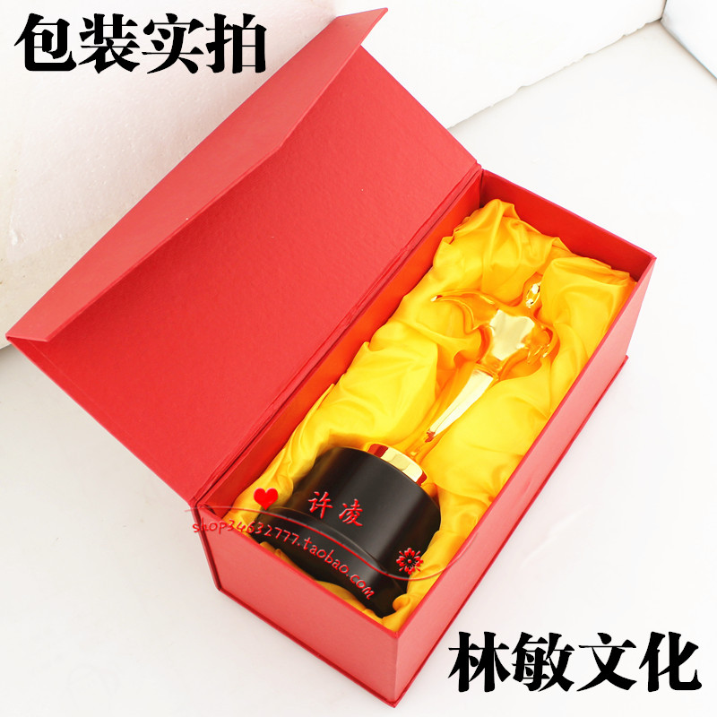 【材料】 底座:中纖木 金人:鋅合金 【尺寸】 獎杯總高: 29.5CM 圓底座: 高度7CM 小金人: 高度22.5CM 【包裝】 一個獎杯免費配備高檔紅色錦盒一個 實物拍攝