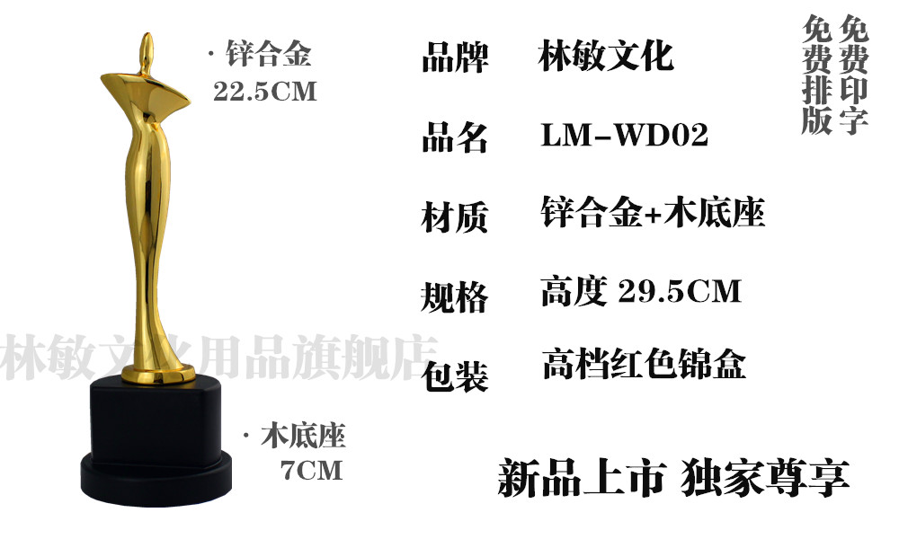 | 本公司大部分商品6一10天到貨。不接急單。急單的客戶請不要下單。感謝諒解與合作! 林敏文化用品旗艦店 新款上架 特價熱銷 免費排版 免費印制 鋅合金舞蹈藝術女神獎杯 LM-WD02