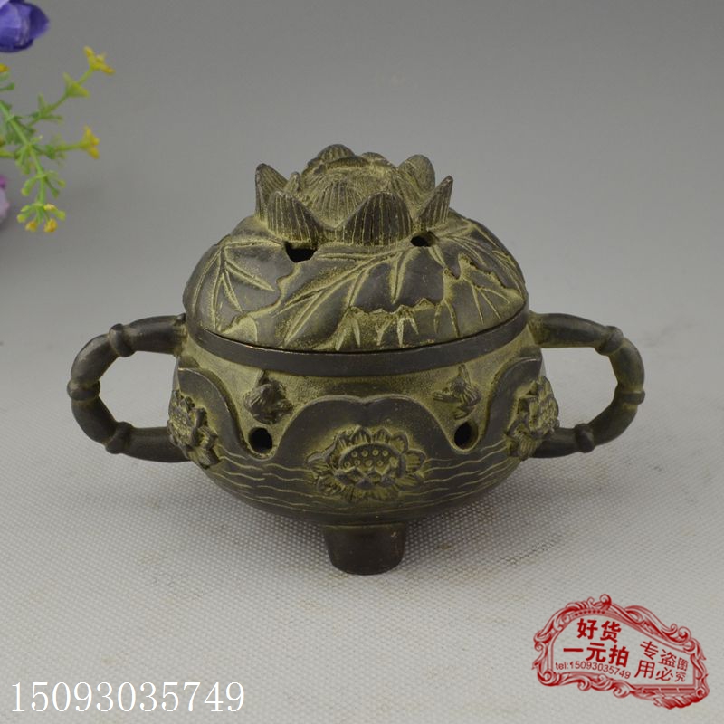 古玩銅器收藏黃銅擺件工藝品商務禮品家居裝飾 荷花香爐 熏爐